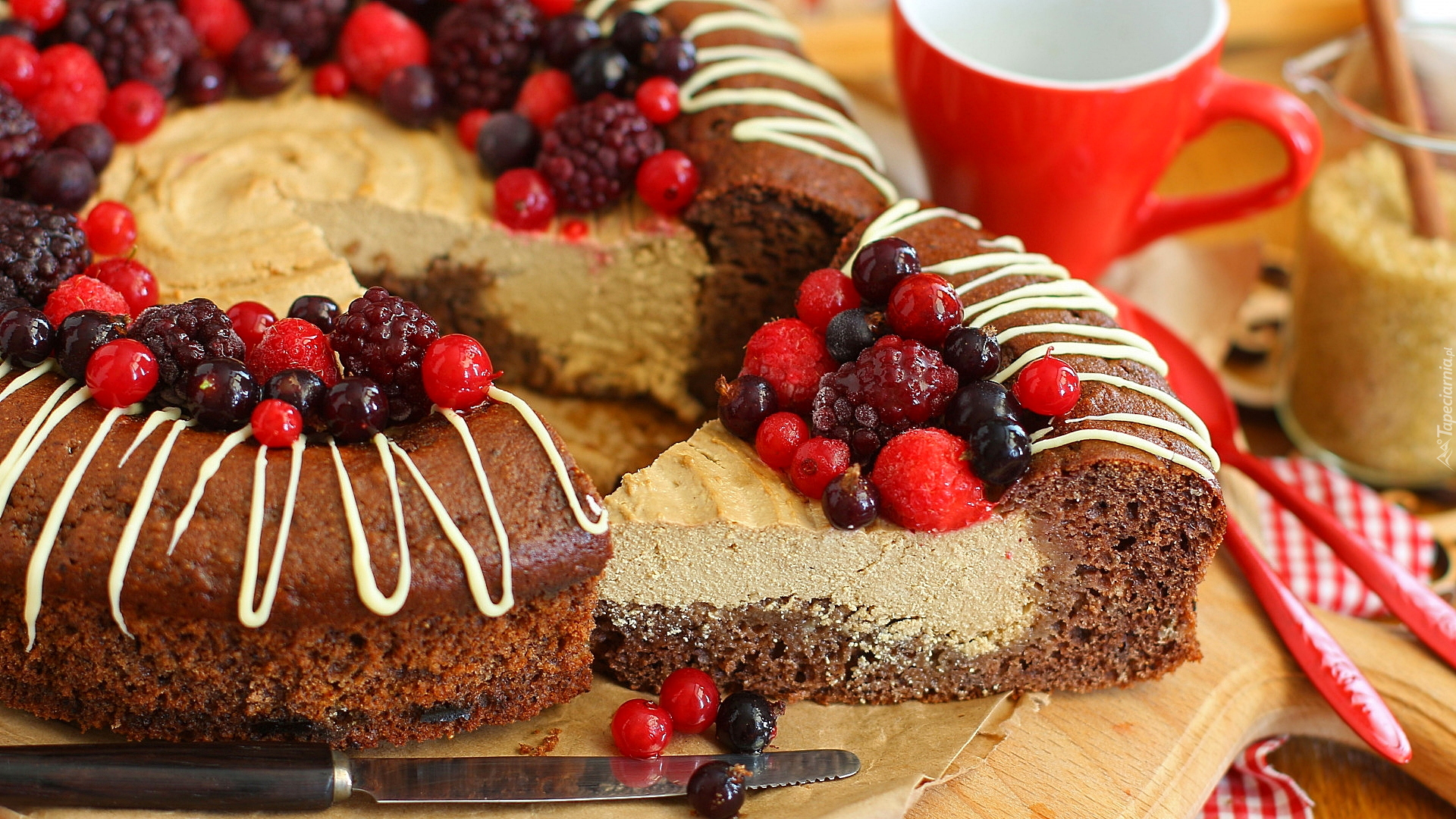 Edytor tapety: Ukrojony kawałek ciasta z owocami