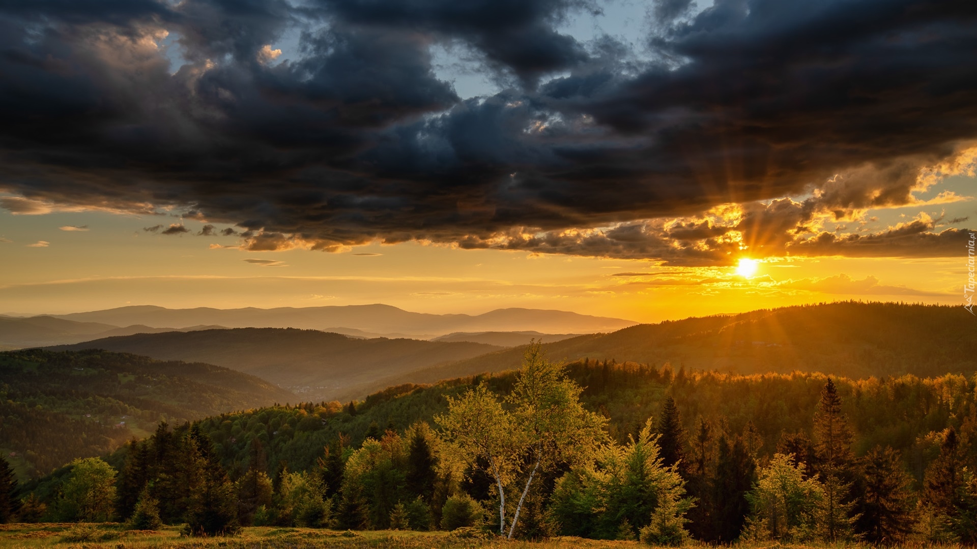 Edytor tapety: Beskidy o wschodzie słońca