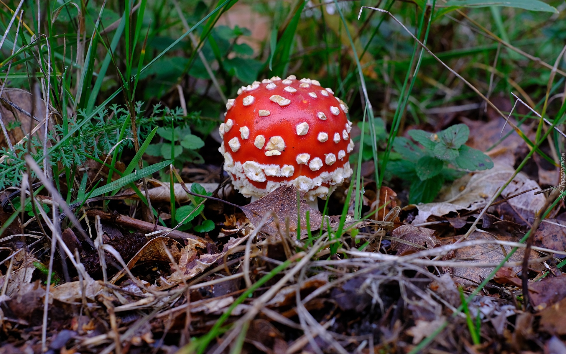 Edytor tapety: Muchomor czerwony na ściółce leśnej