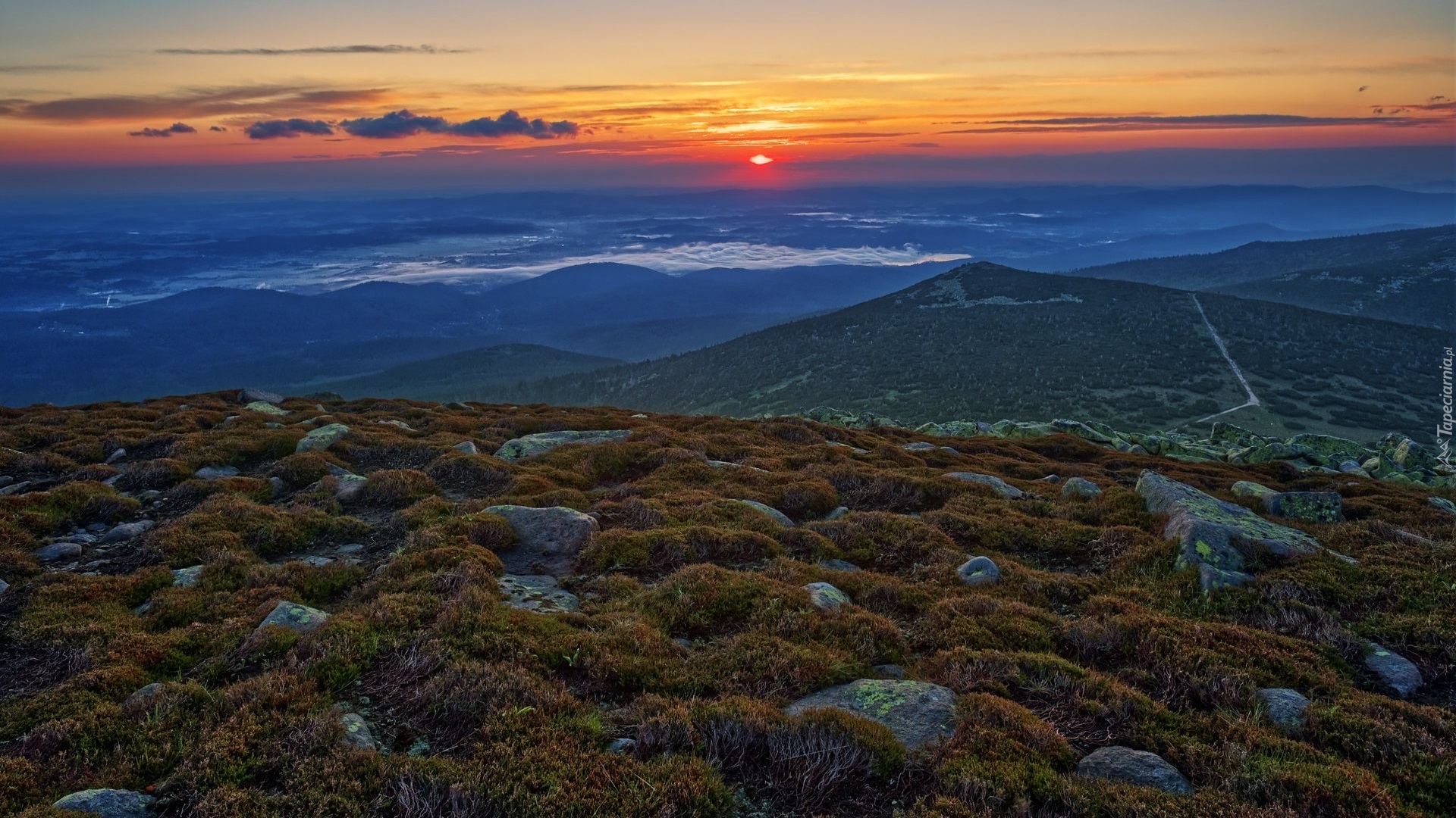 Edytor tapety: Wzgórza z widokiem na wschód słońca