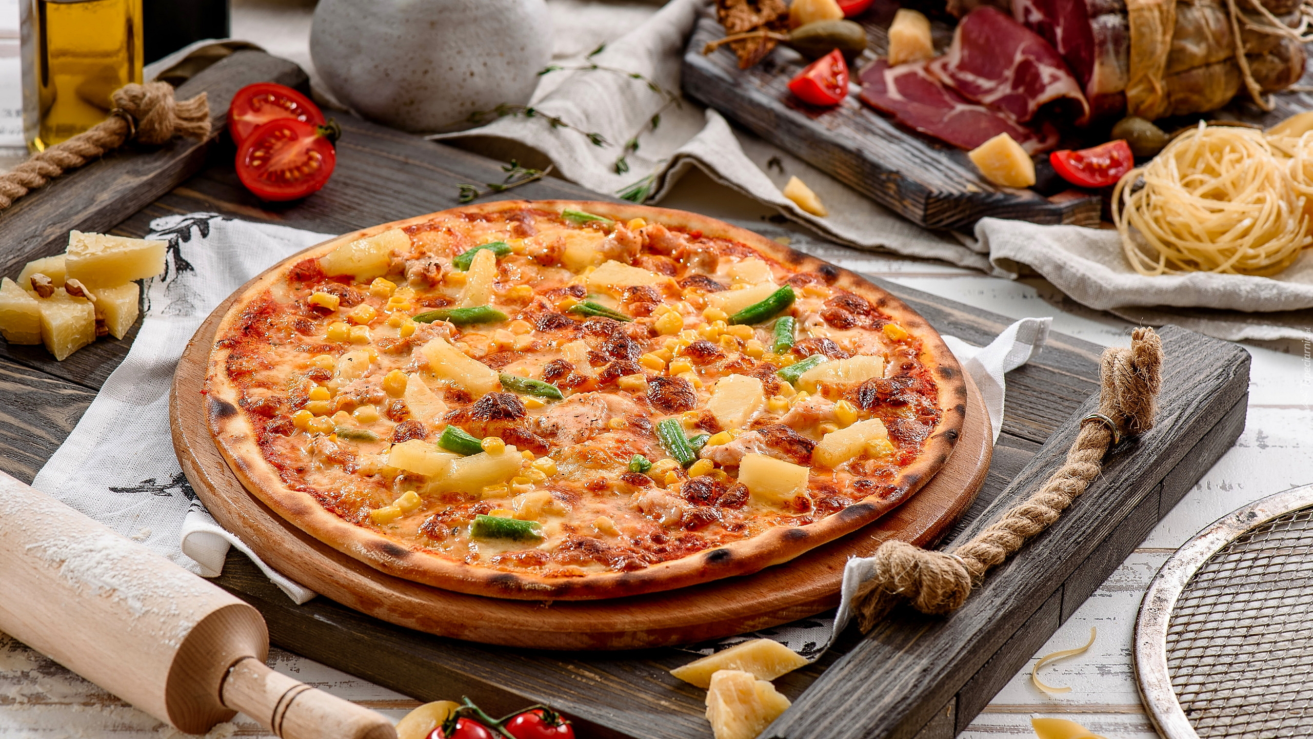 Edytor tapety: Pizza na drewnianej tacy