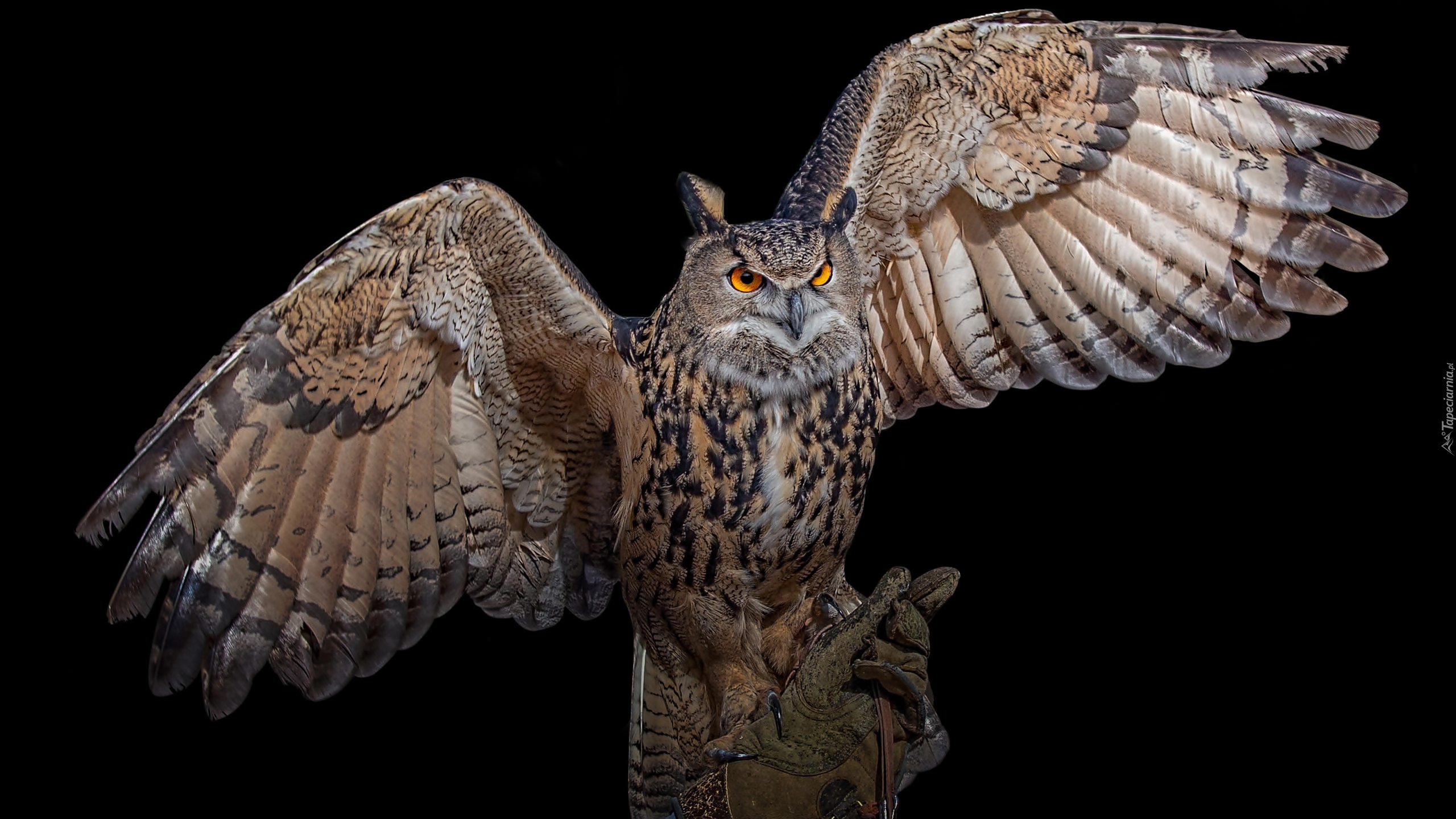 Edytor tapety: Puchacz zwyczajny z rozpostartymi skrzydłami