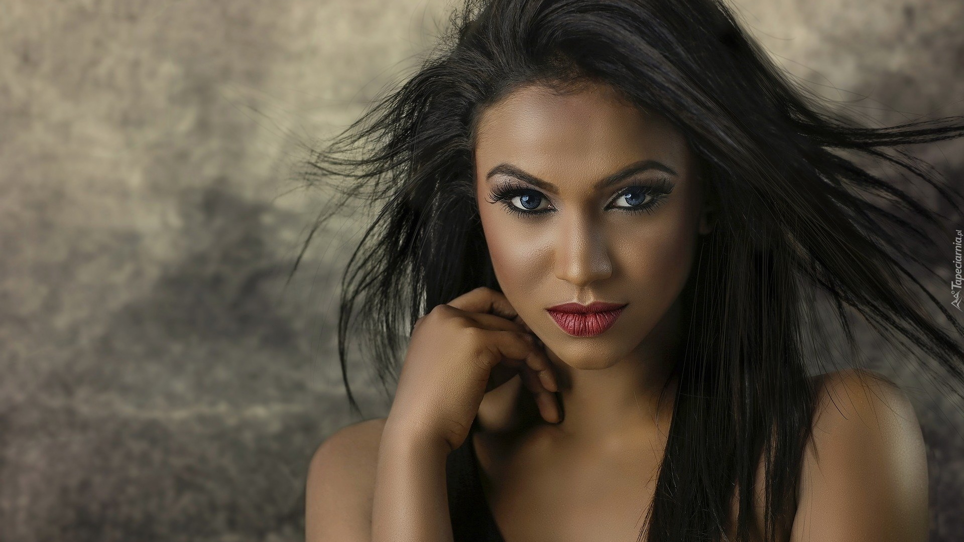 Edytor tapety: Brunetka z rozwianymi włosami