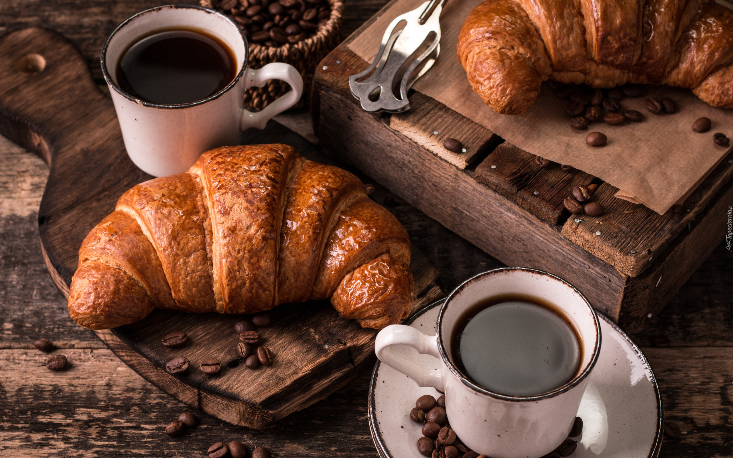 Edytor tapety: Rogaliki obok kawy w kubkach
