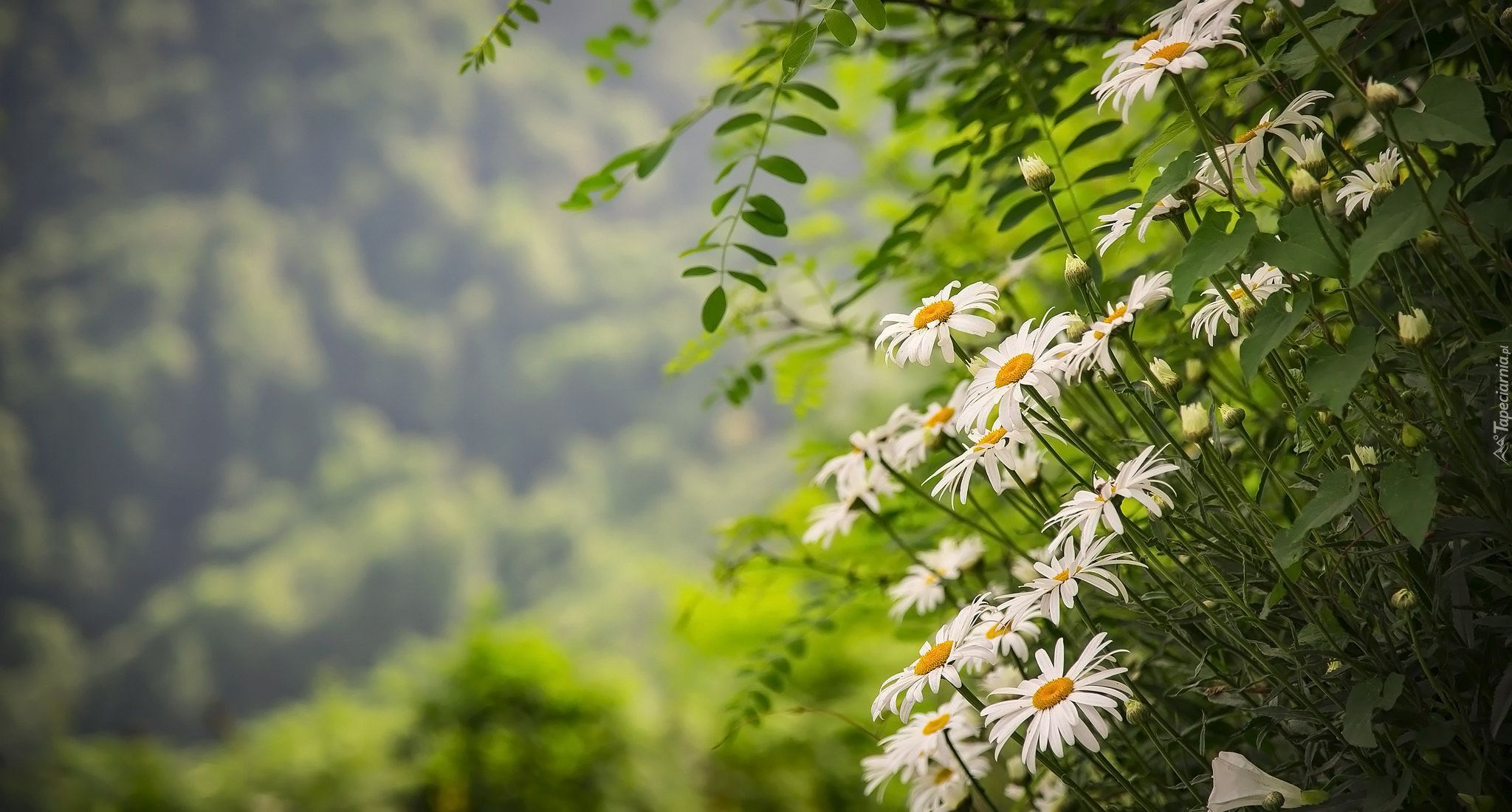 Edytor tapety: Margerytki w zbliżeniu na rozmytym tle