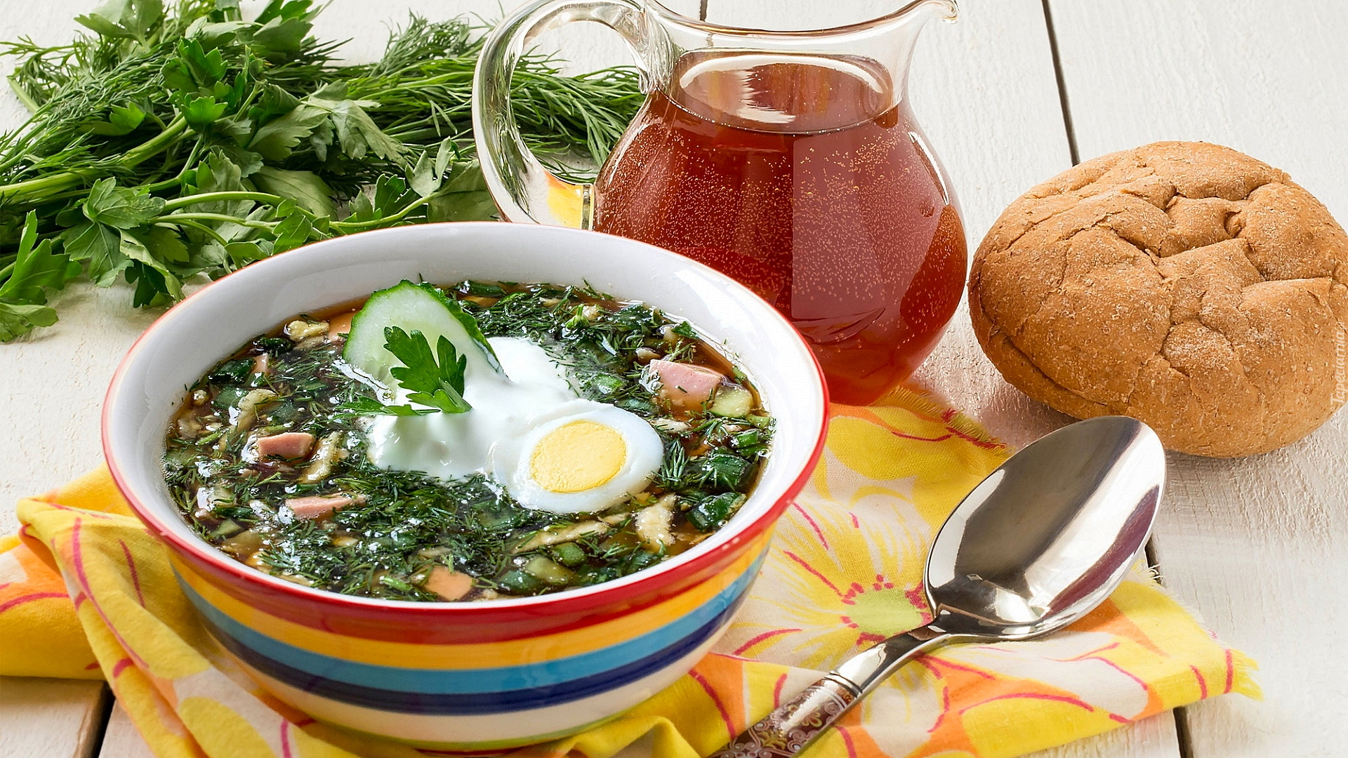 Edytor tapety: Zupa z jajkiem obok herbaty w dzbanku