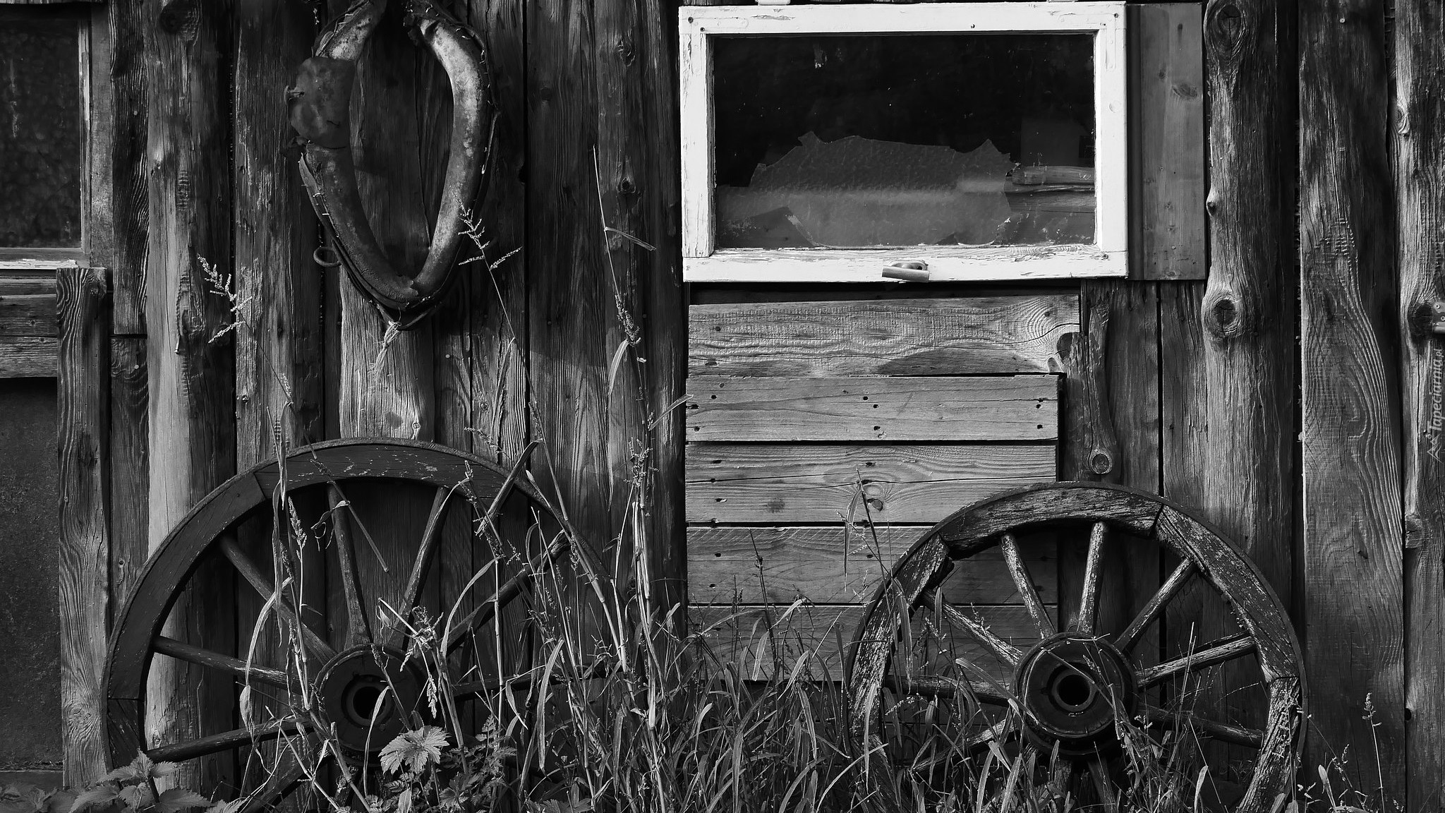Edytor tapety: Koła oparte o drewnianą ścianę
