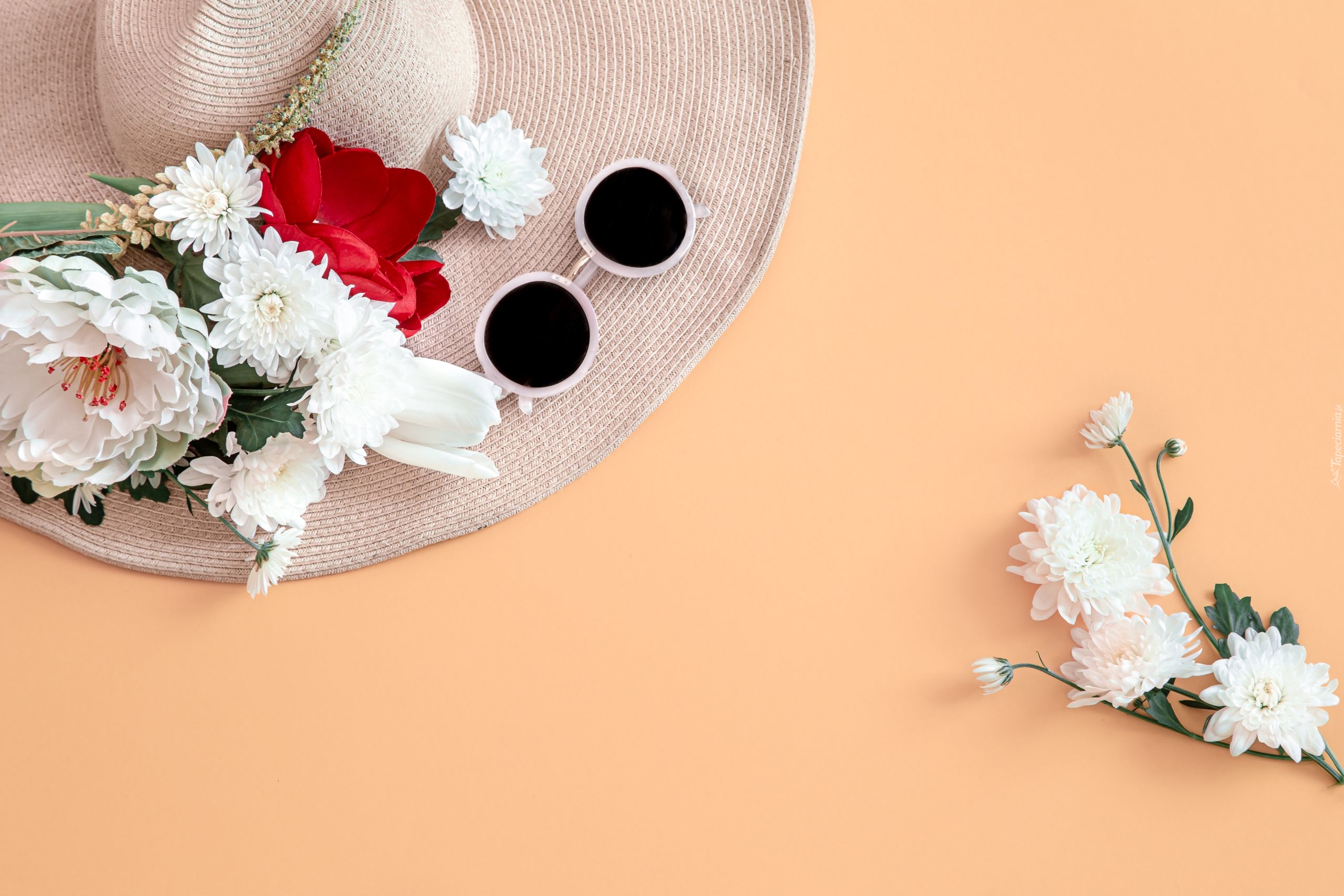 Edytor tapety: Okulary słoneczne i kwiaty na kapeluszu