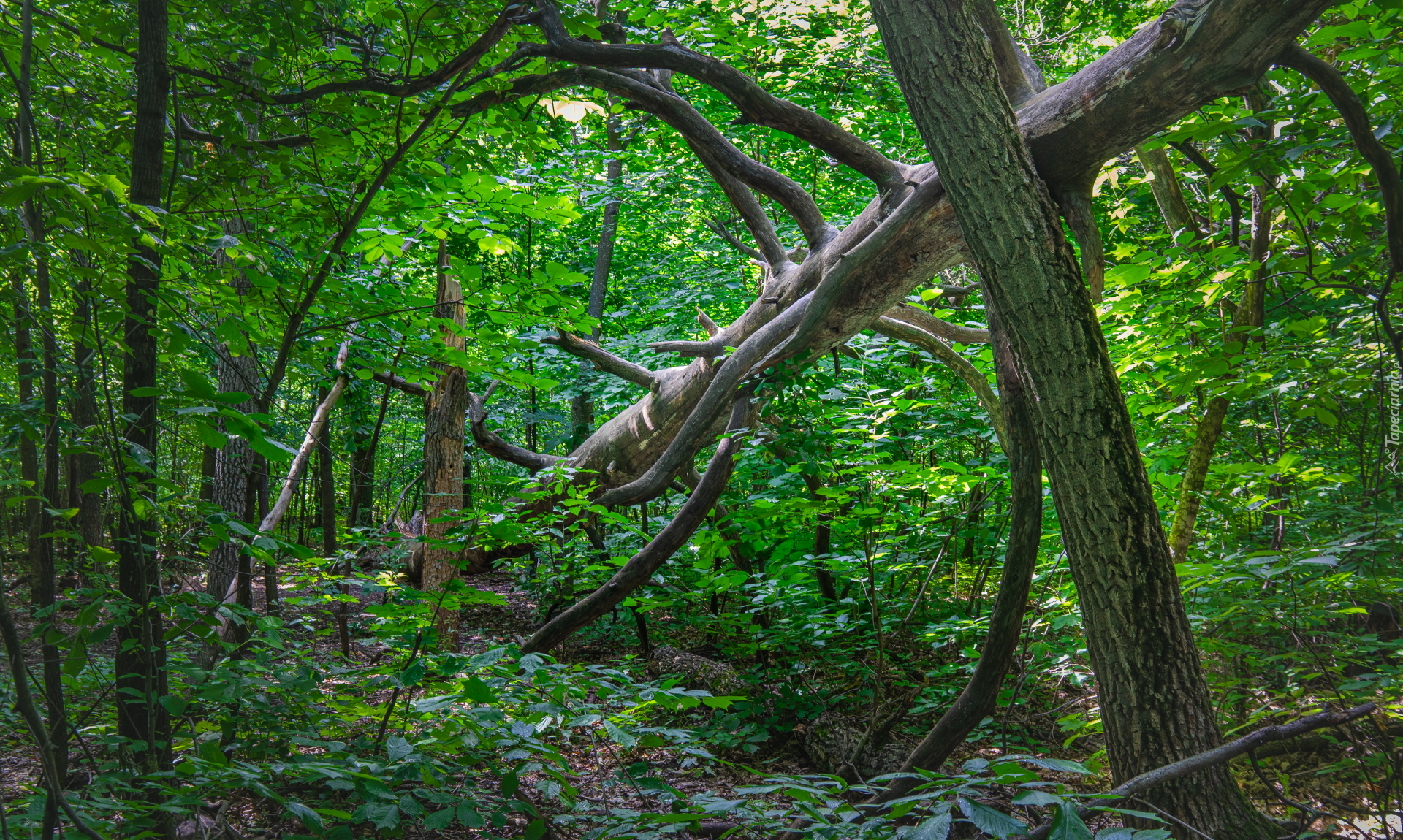 Edytor tapety: Złamane suche drzewo w zielonym lesie
