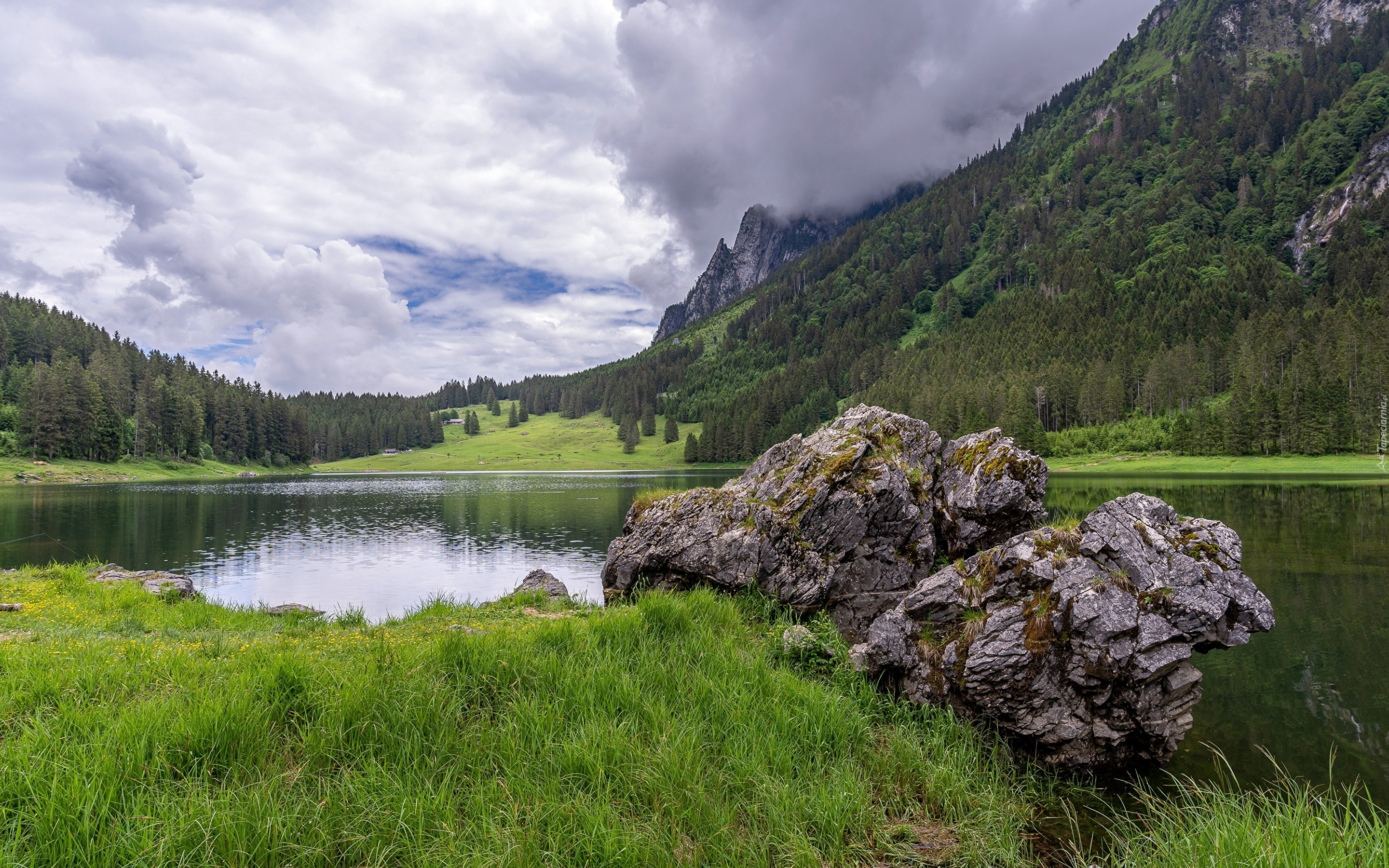 Edytor tapety: Kamienie nad jeziorem Voralpsee