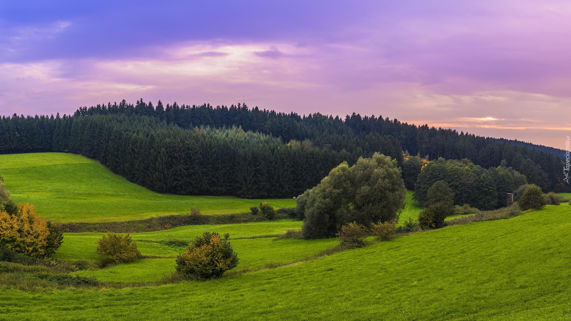 Edytor tapety: Drzewa na zielonych łąkach