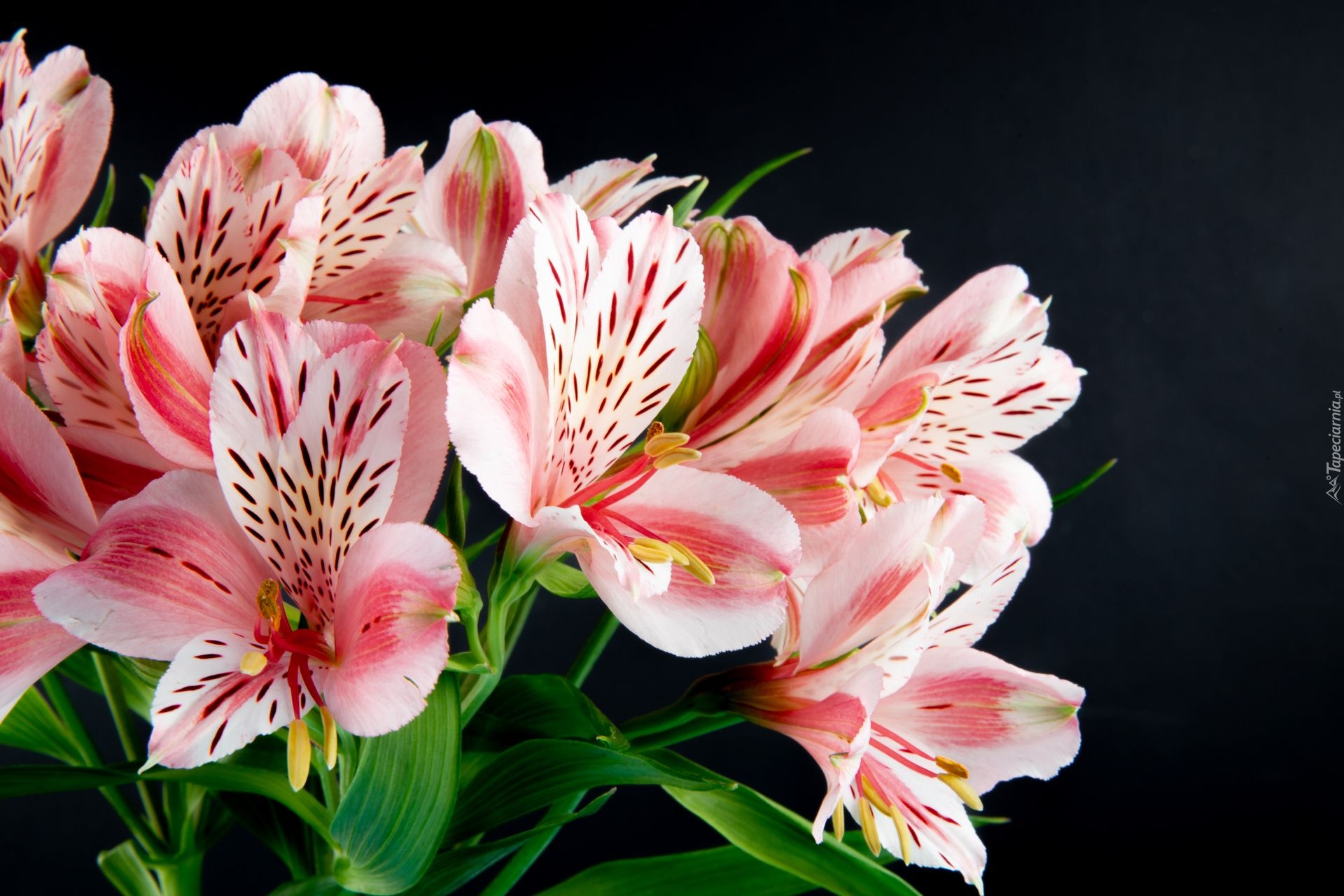 Edytor tapety: Różowe alstremerie na ciemnym tle