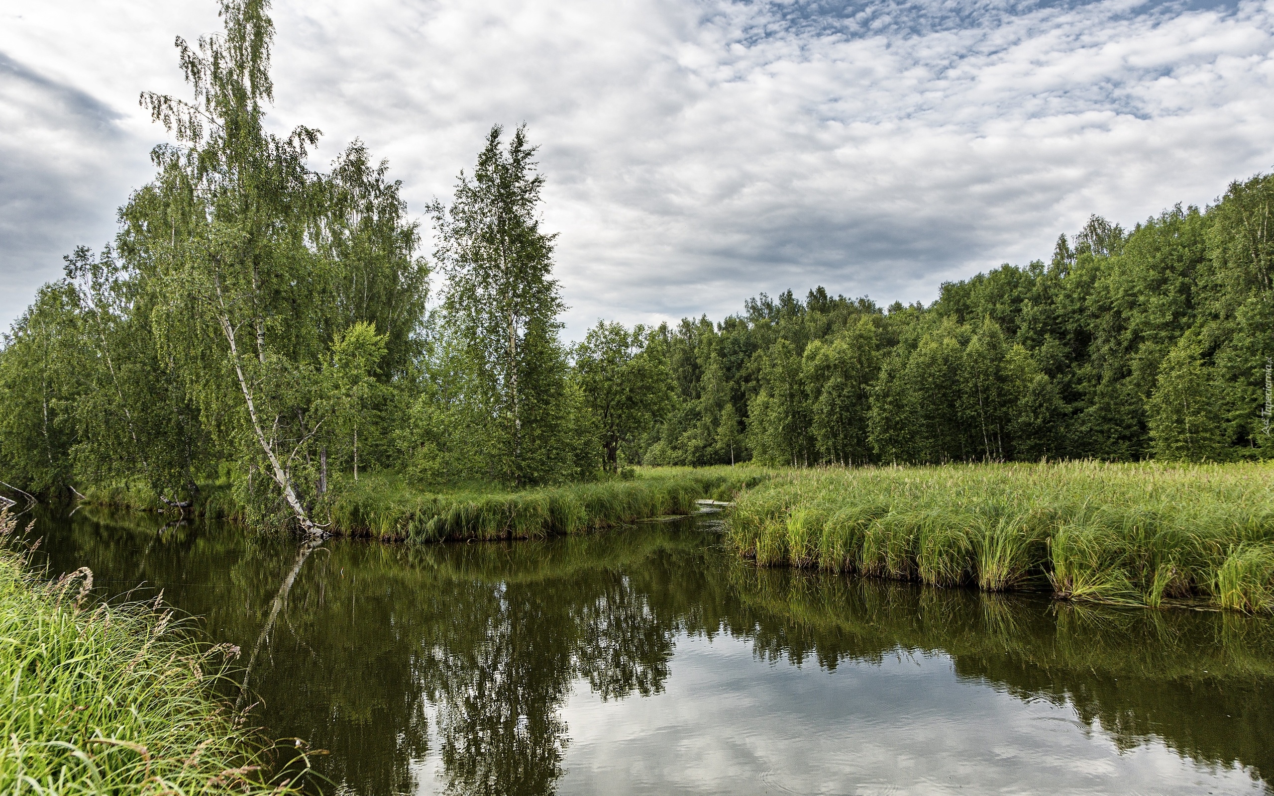 Edytor tapety: Zielone drzewa i trawa nad rzeką