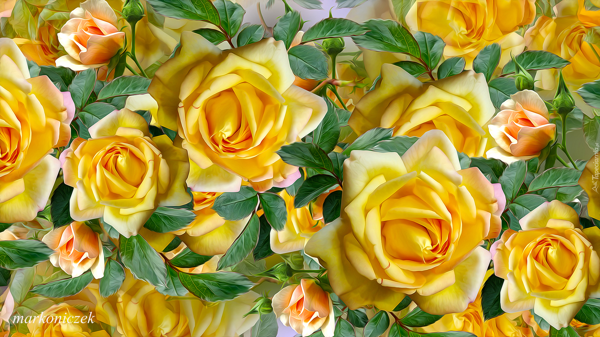 Edytor tapety: Rozkwitnięte żółte róże