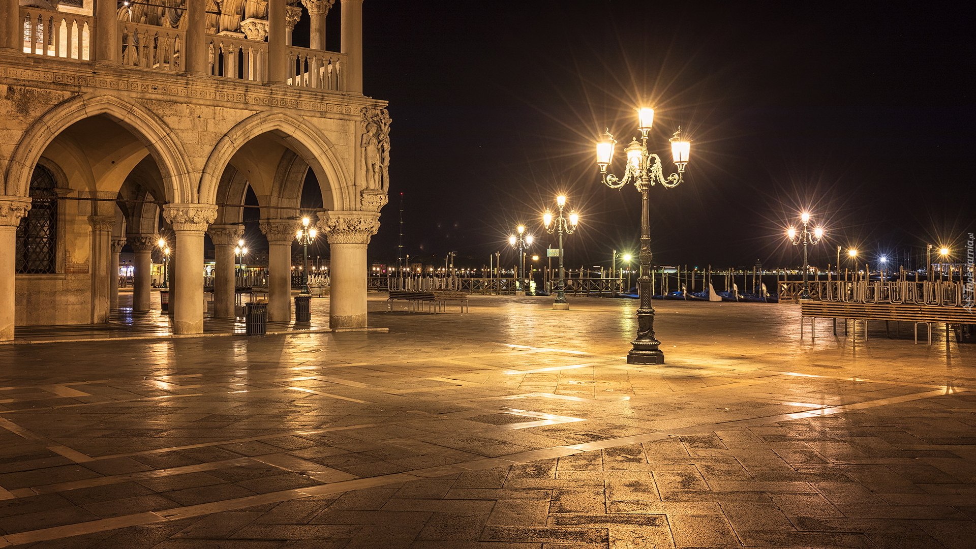 Edytor tapety: Oświetlone latarnie na Piazzetta San Marco w Wenecji