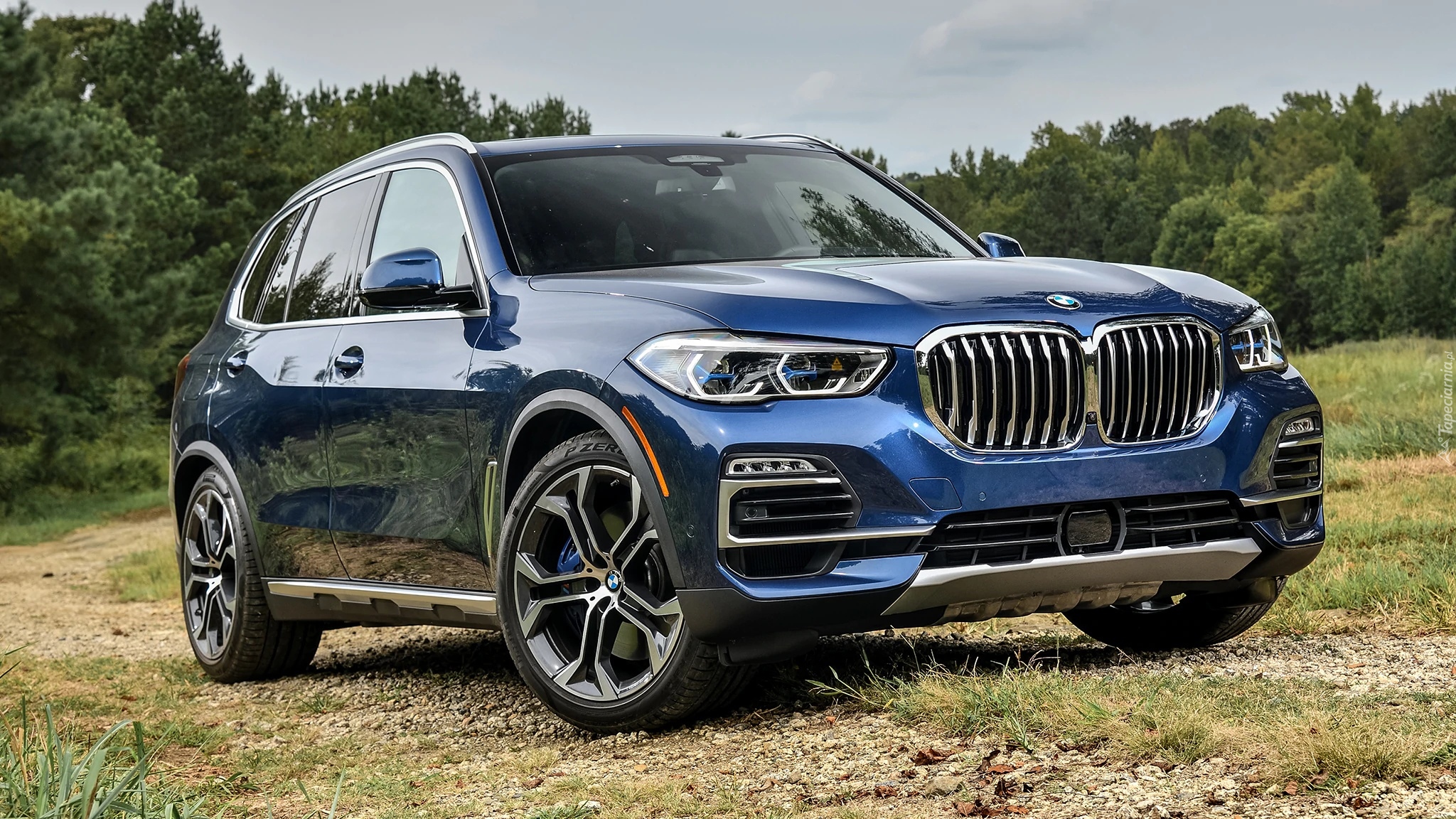 Edytor tapety: Niebieskie BMW X5 G05 na polnej drodze