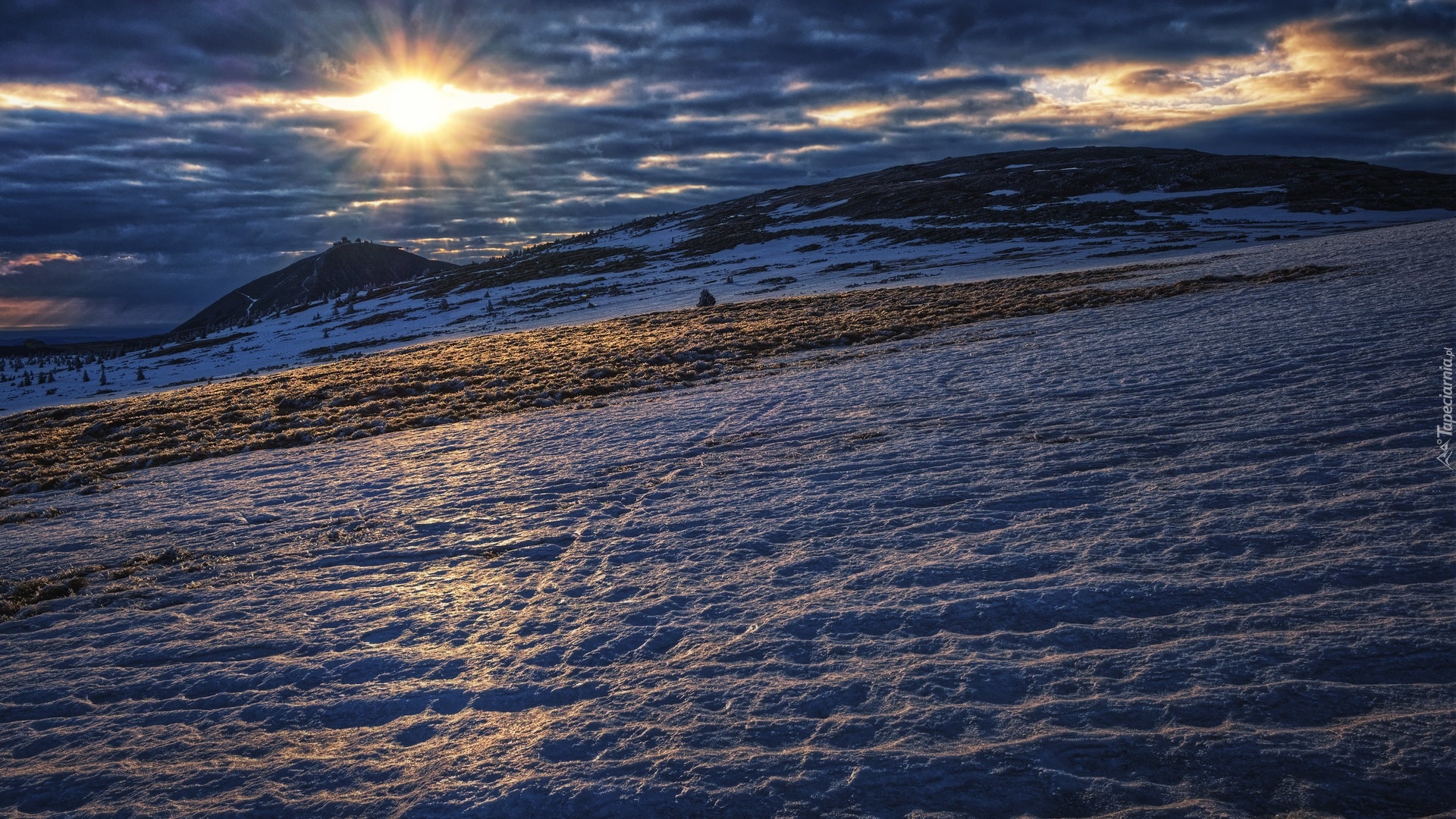 Edytor tapety: Zaśnieżony stok w słonecznym blasku