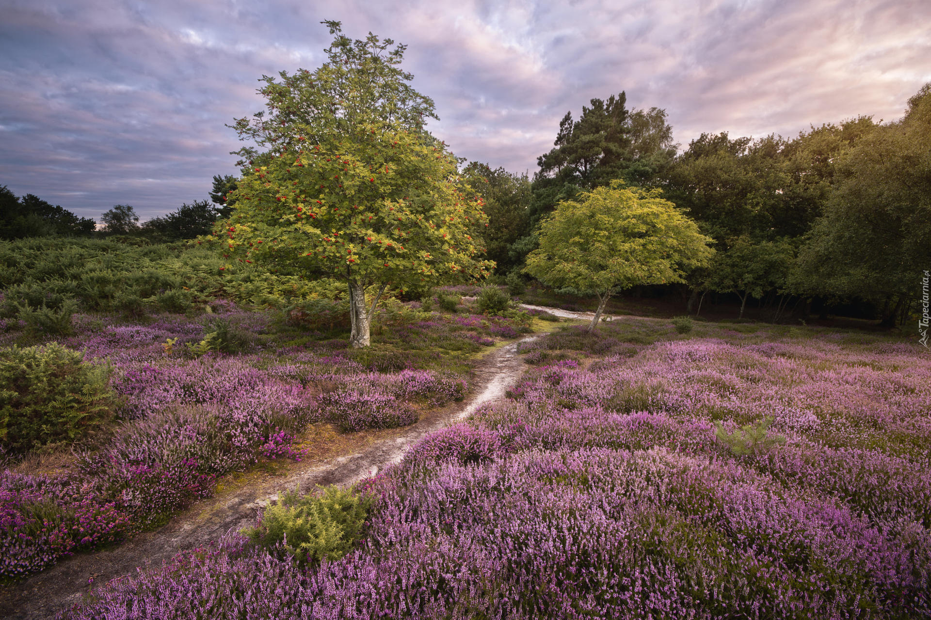 Edytor tapety: Drzewa i paprocie na wrzosowisku