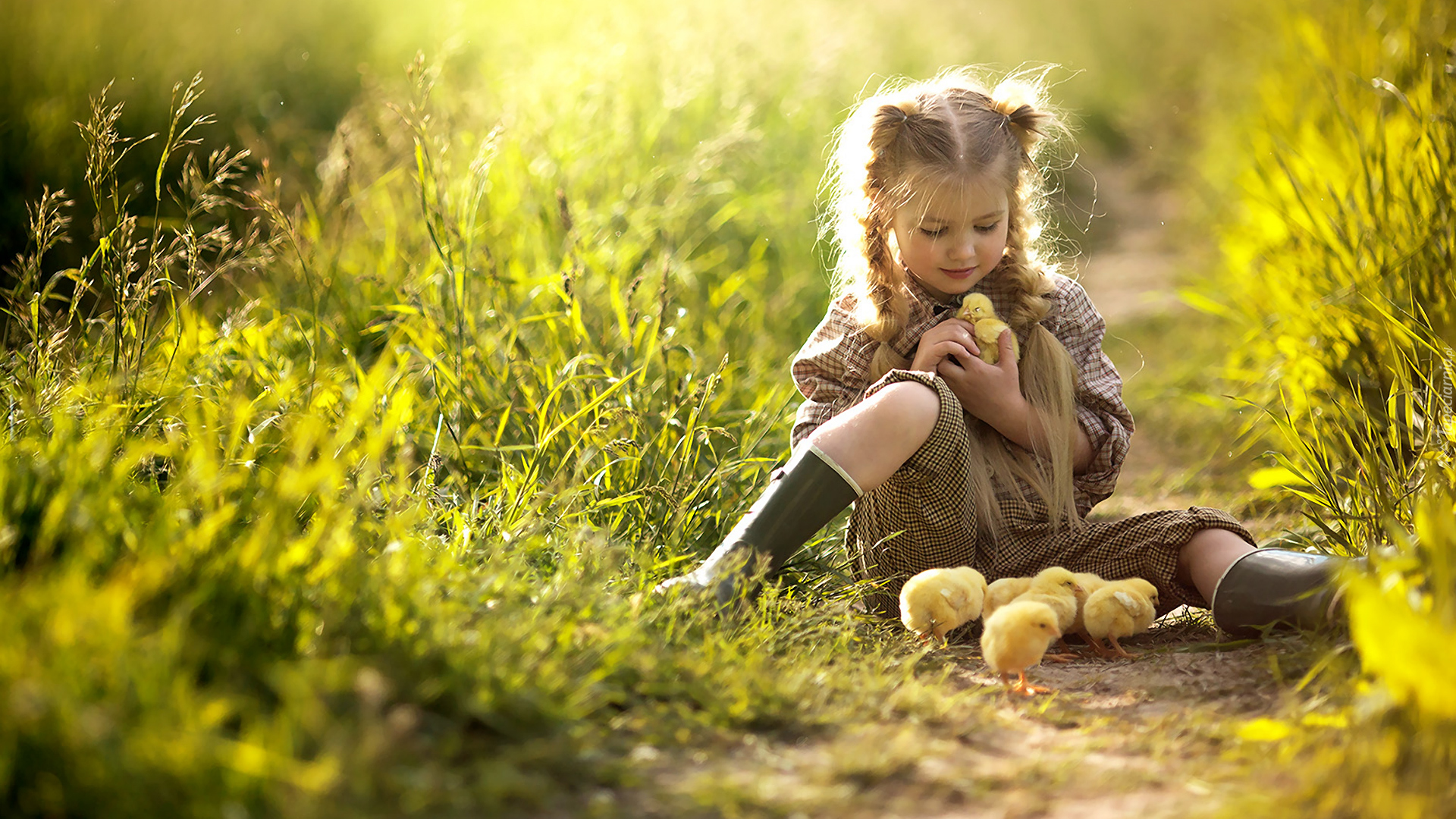 Edytor tapety: Dziewczynka z kurczaczkami
