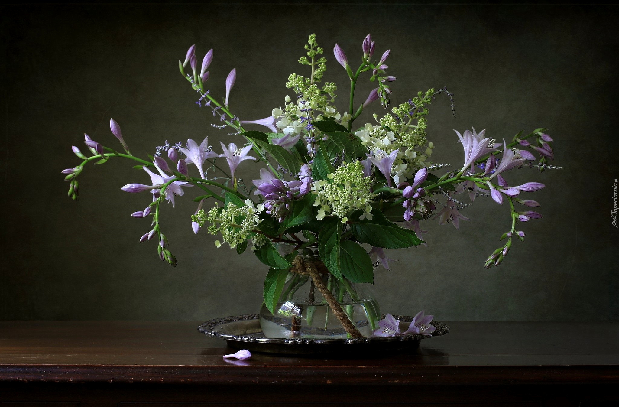 Edytor tapety: Bukiet fioletowych i białych kwiatów w wazonie