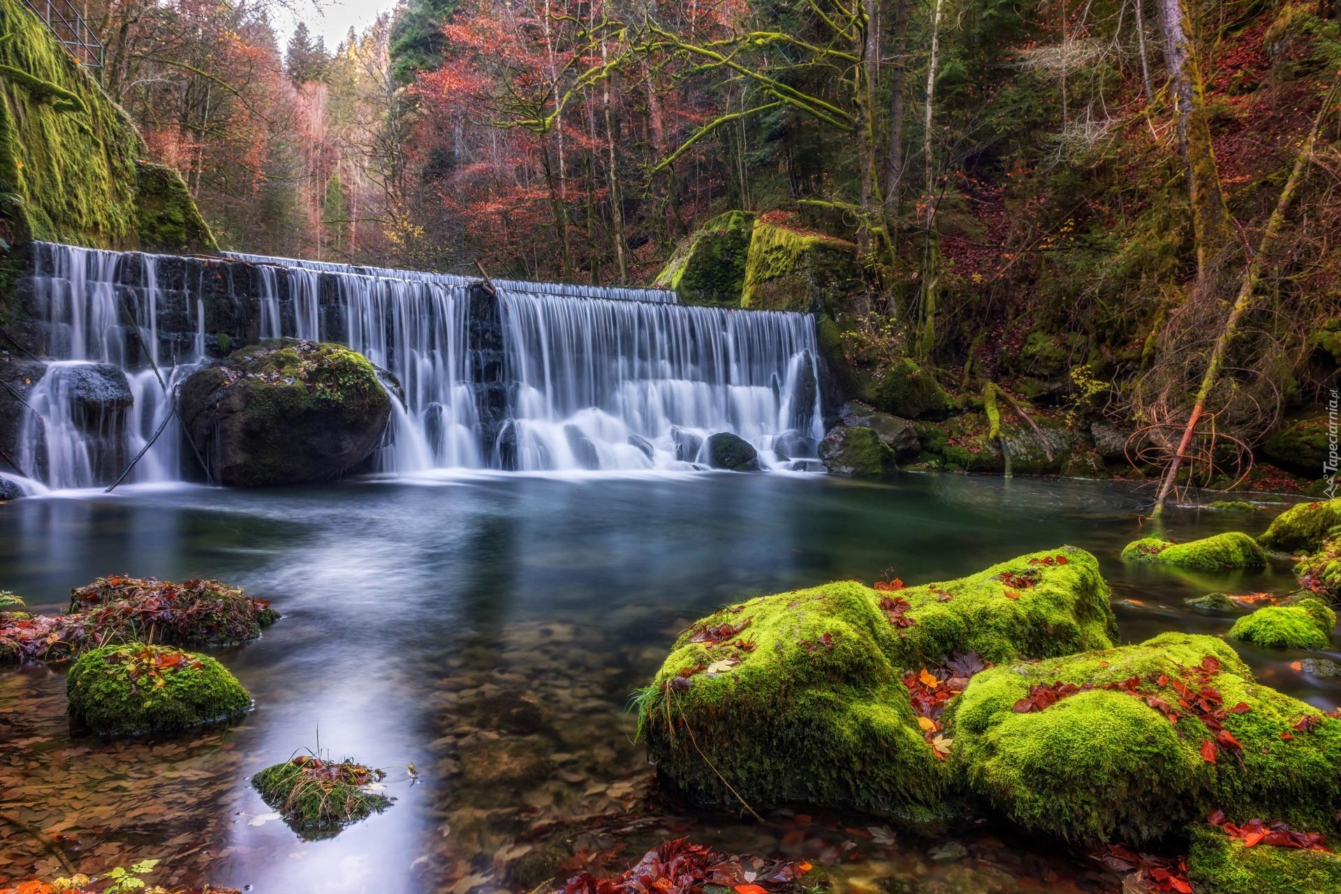 Edytor tapety: Omszałe kamienie w rzece obok wodospadu