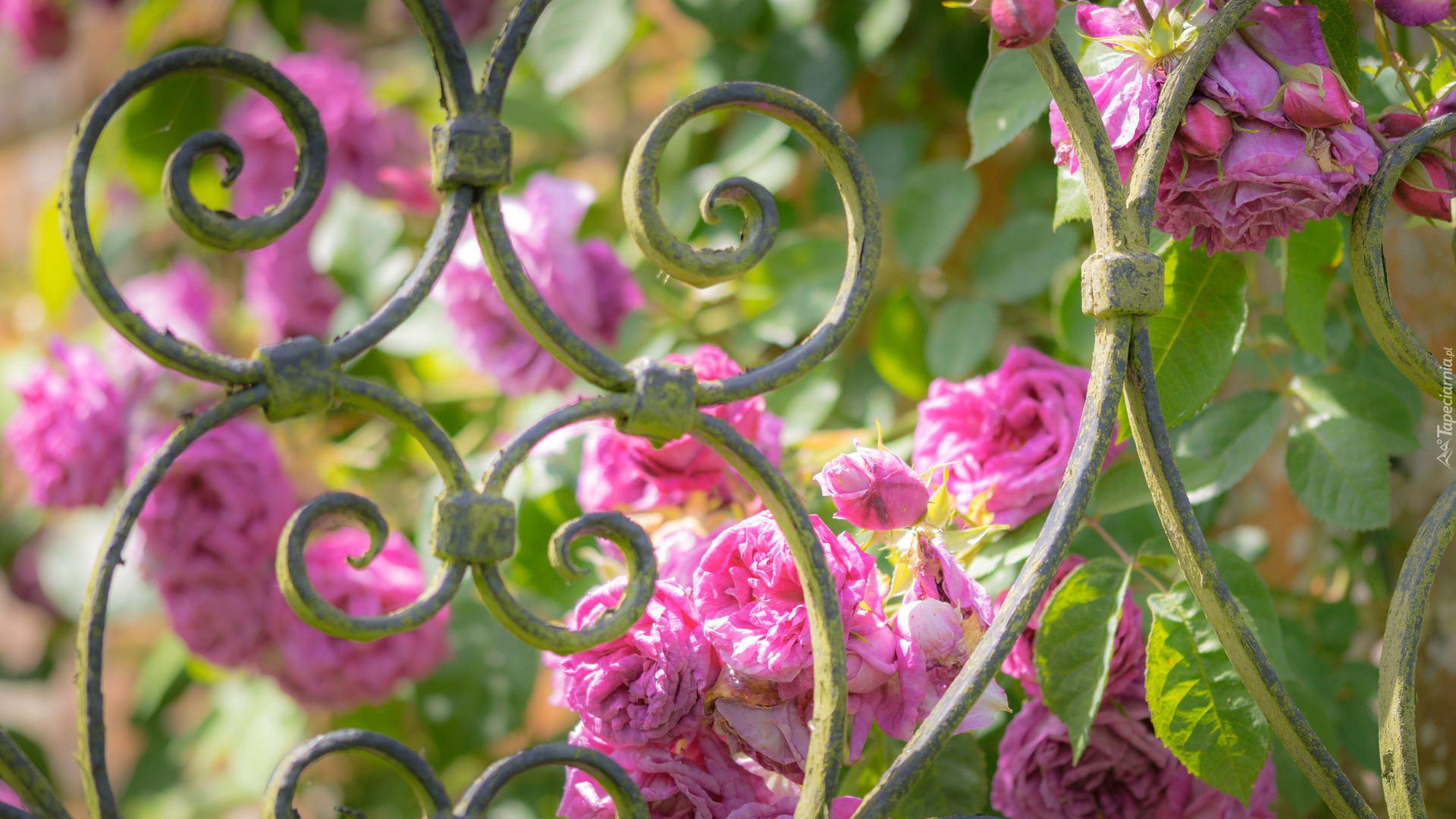 Edytor tapety: Róże przy ogrodzeniu