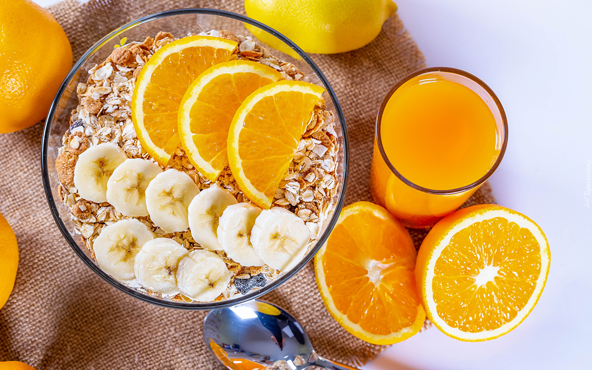Edytor tapety: Musli z kawałkami pomarańczy i bananów