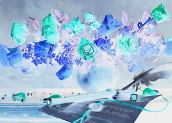 Edytor tapety: Flet na nutach przy wazonie z różami