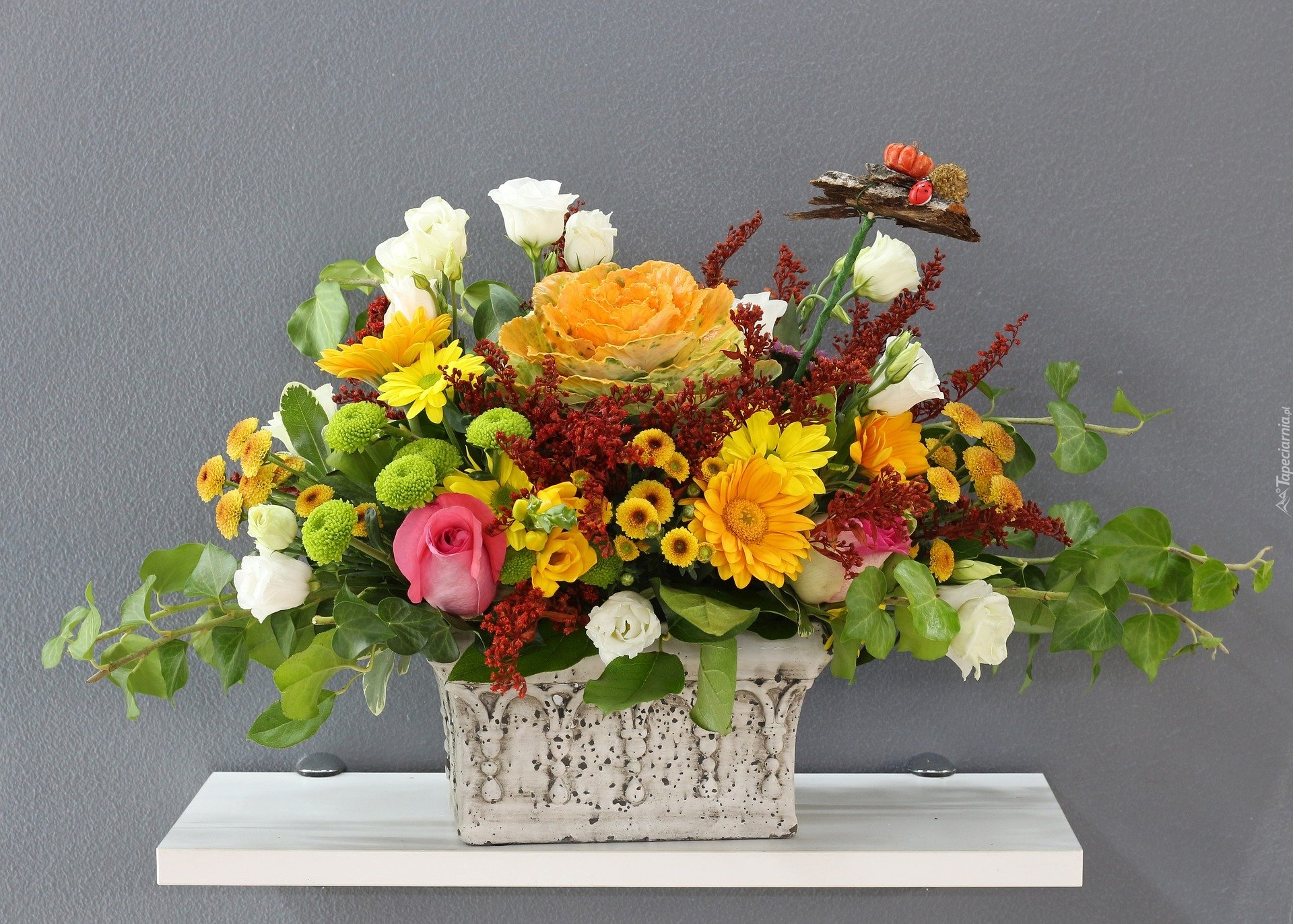 Edytor tapety: Bukiet kwiatów w prostokątnym wazonie