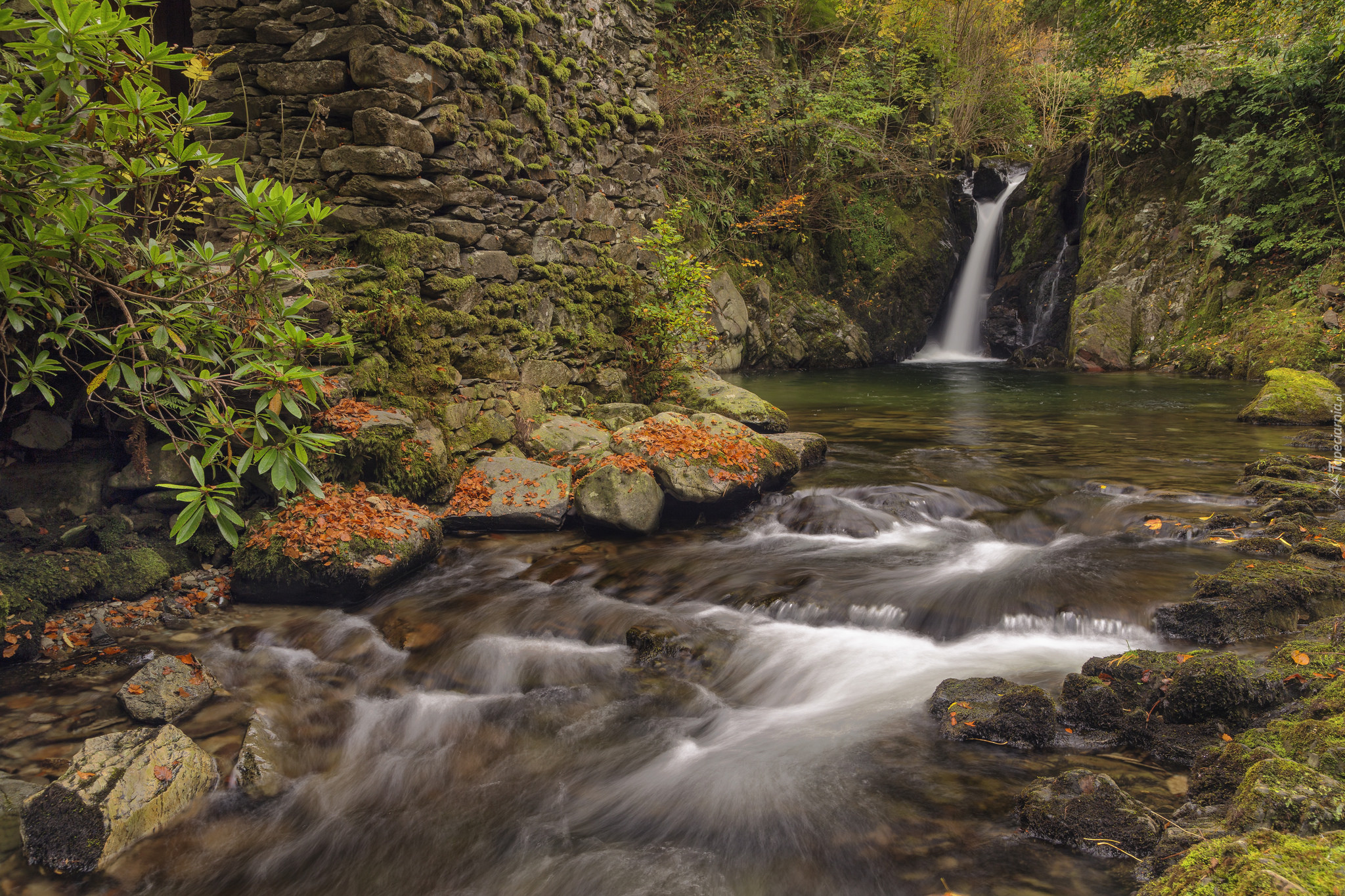 Edytor tapety: Mały wodospad wpadający do rzeki