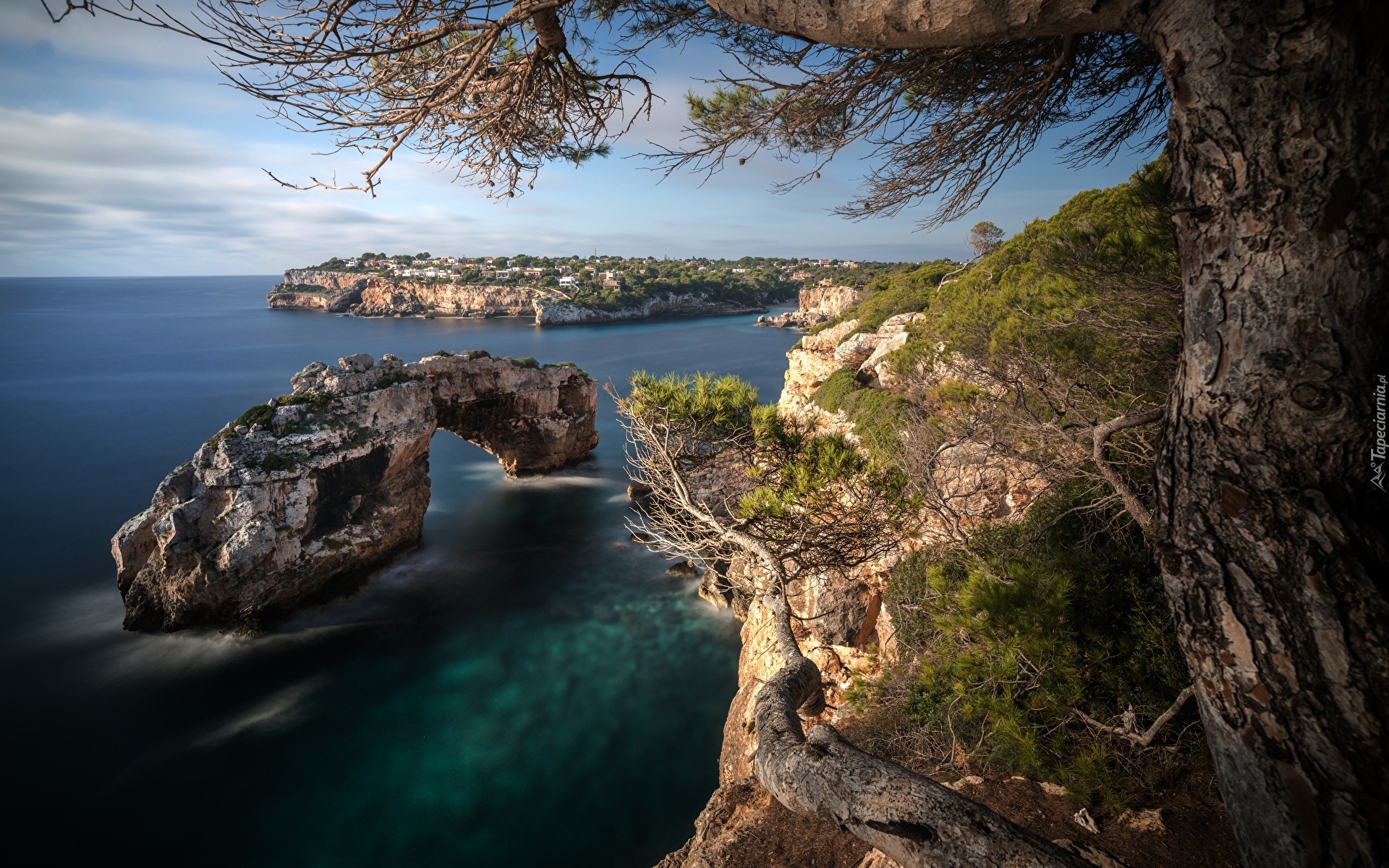 Edytor tapety: Drzewo na skalistym wybrzeżu