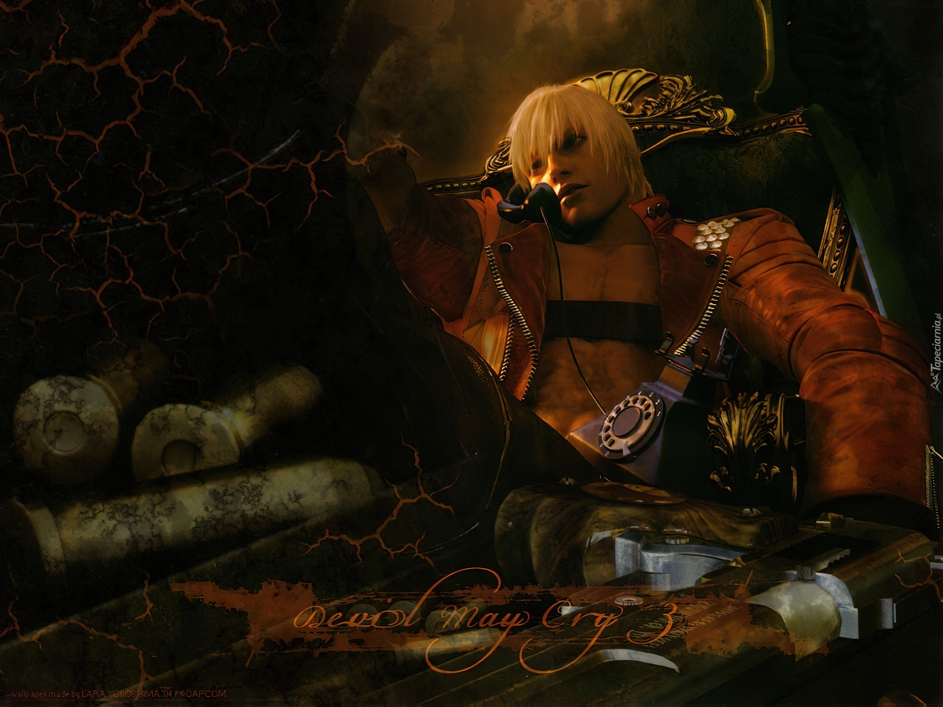 Edytor tapety: Devil May Cry, postać mężczyzna, fotel, broń