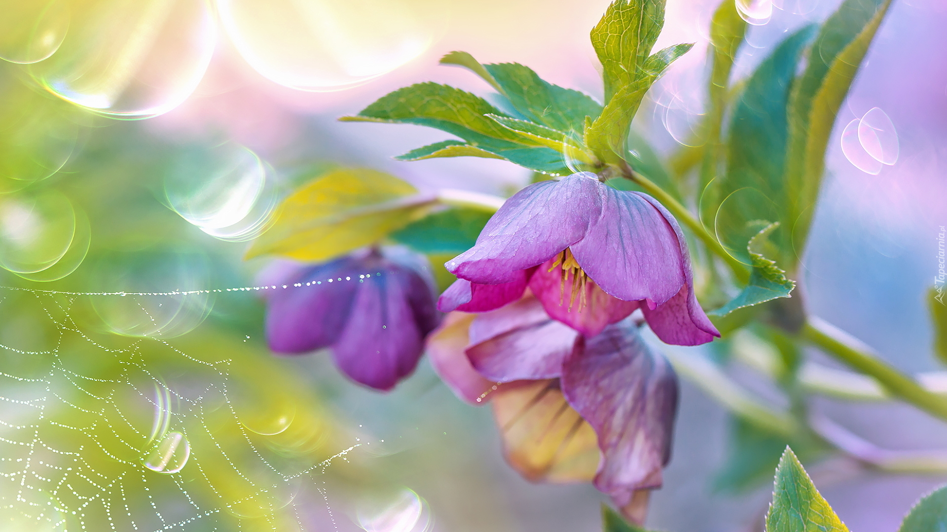 Edytor tapety: Pajęczyna obok kwiatów ciemiernika