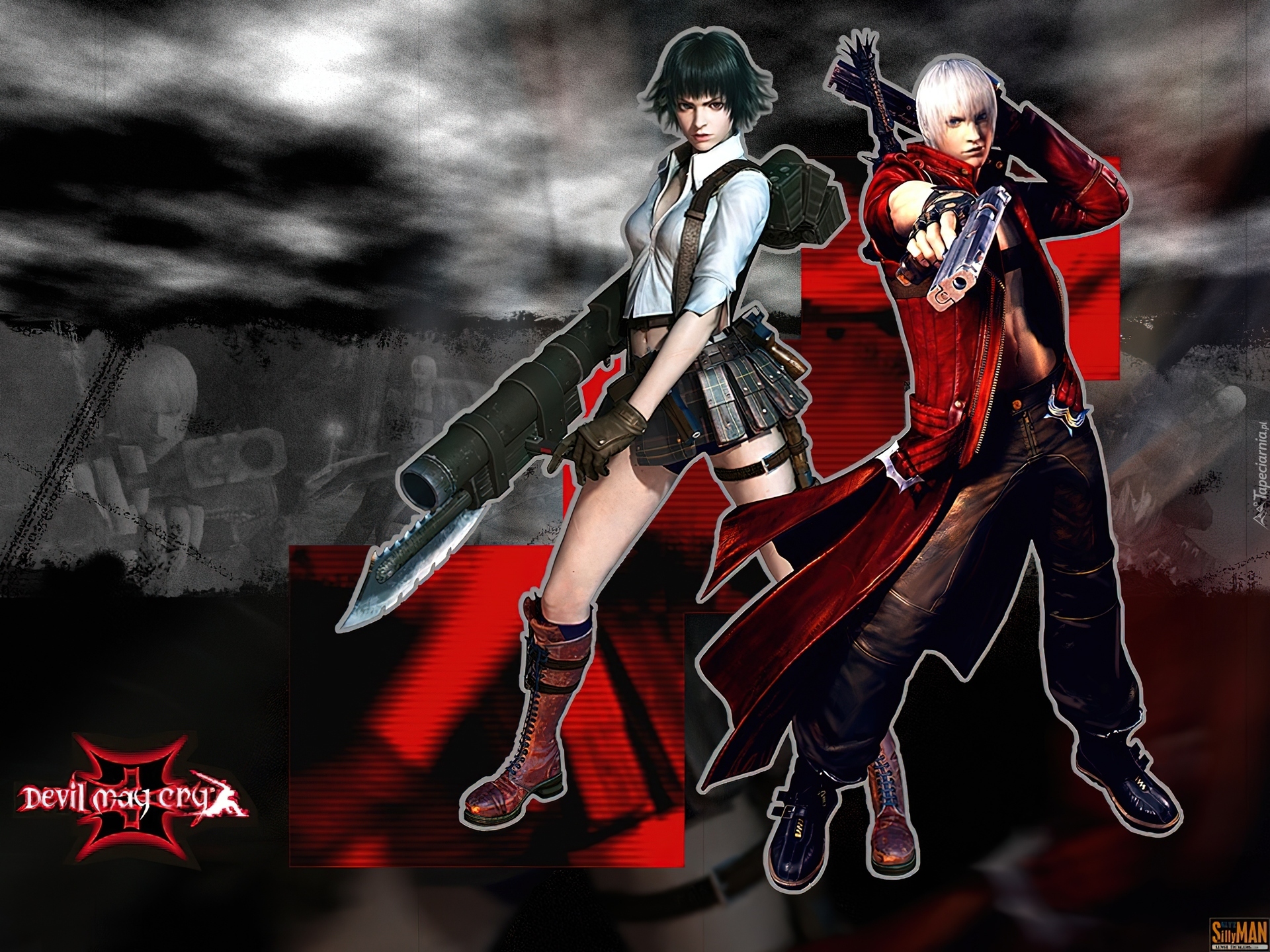 Edytor tapety: Devil May Cry, postacie, kobieta, mężczyzna, broń