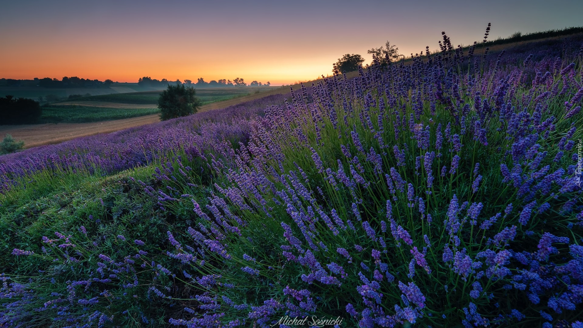 Edytor tapety: Lawenda na wzgórzu w blasku zachodzącego słońca