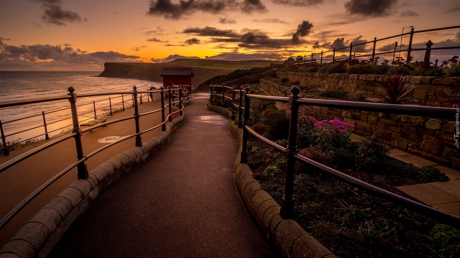Edytor tapety: Rabata z kwiatami przy barierce zejścia nad morze