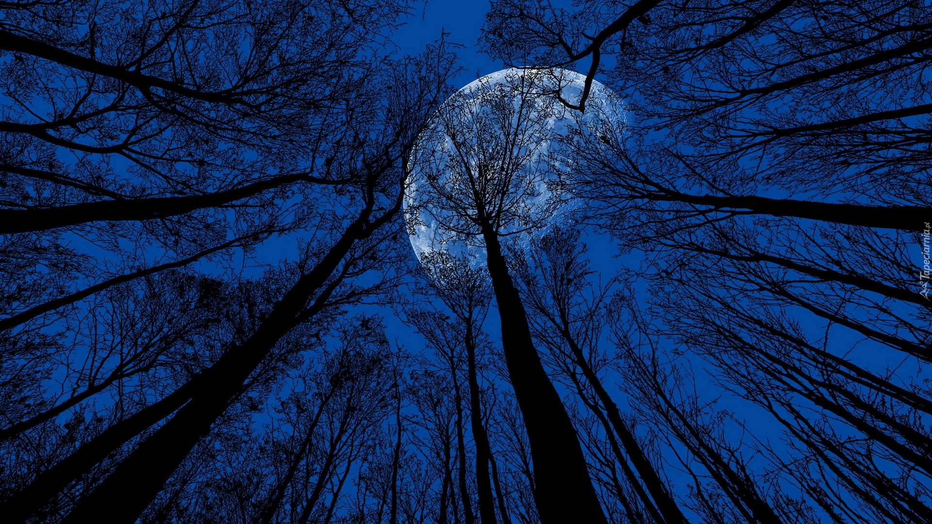 Edytor tapety: Wierzchołki drzew na tle księżyca