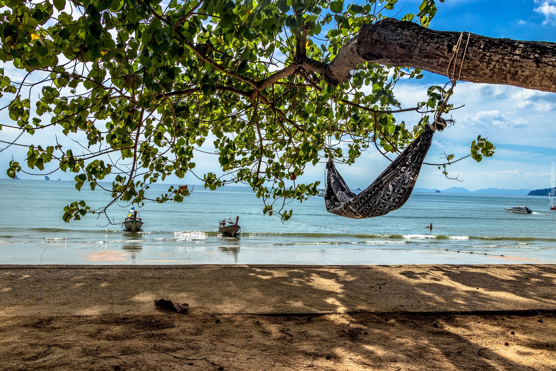 Edytor tapety: Hamak na drzewie z widokiem na Morze Andamańskie