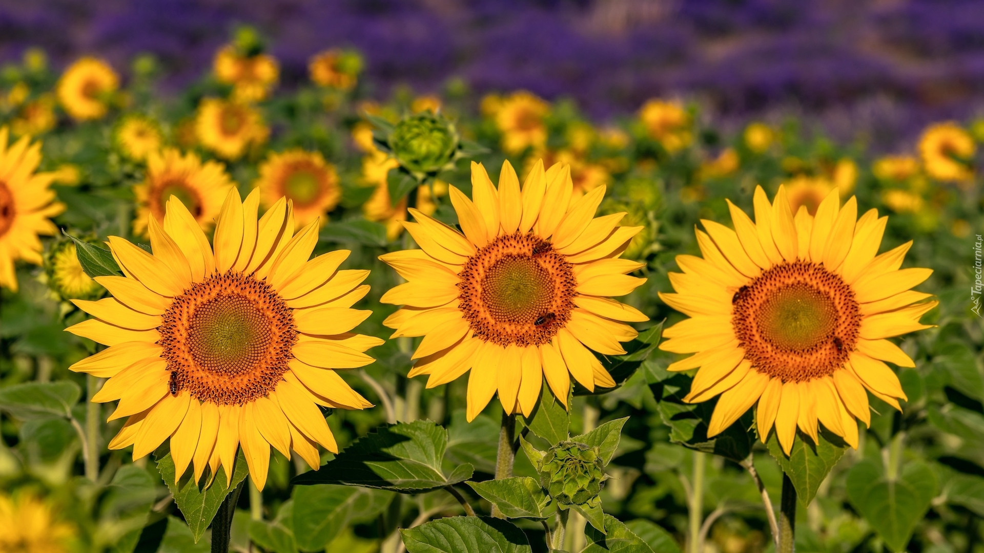 Edytor tapety: Pszczoły na kwiatach słonecznika