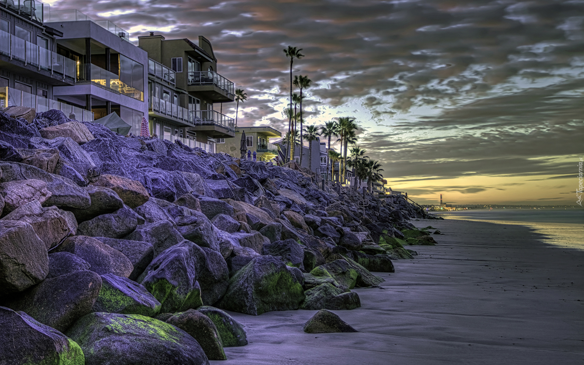 Edytor tapety: Kamienie i domy na wybrzeżu