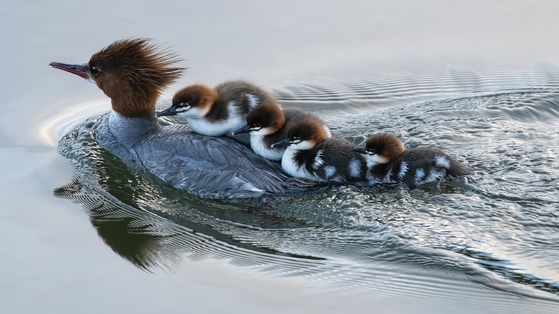 Edytor tapety: Nurogęś z młodymi na wodzie