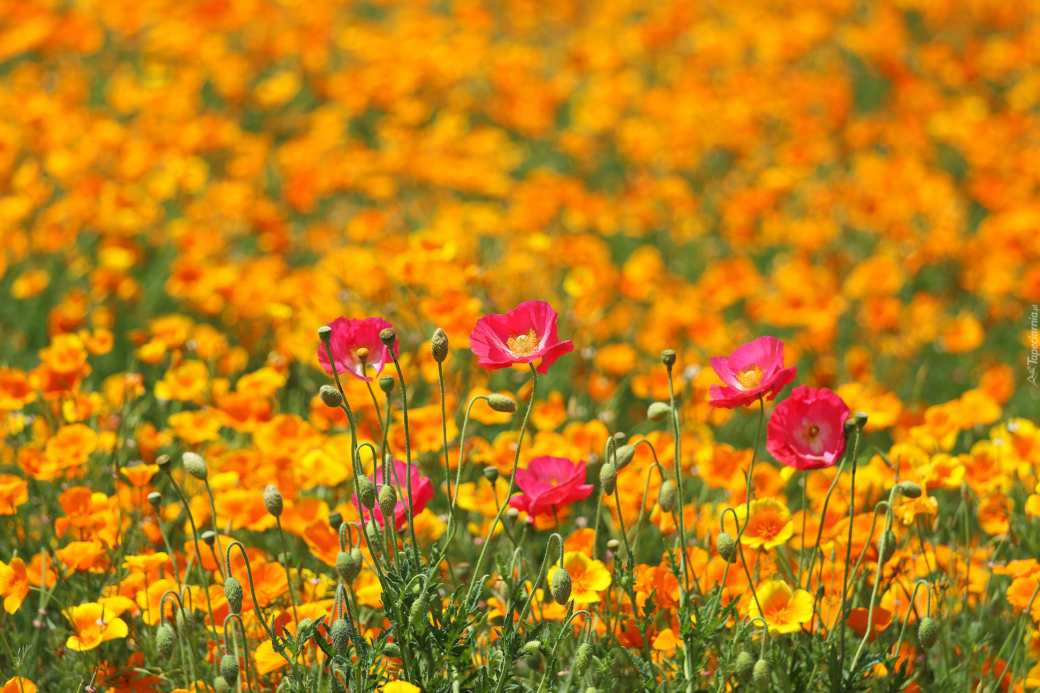 Edytor tapety: Maki pośród pomarańczowych kwiatów