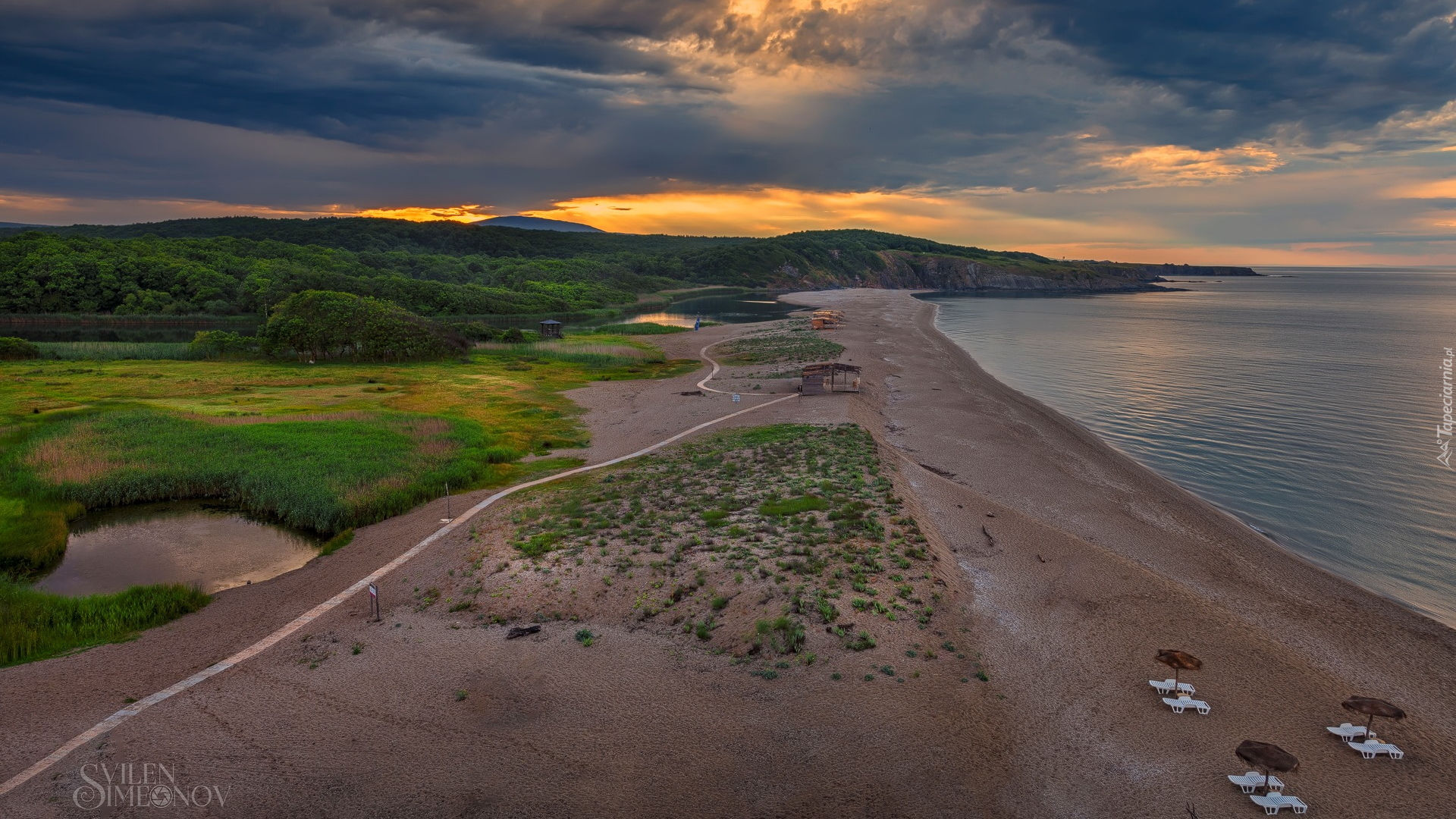 Edytor tapety: Leżaki na plaży Veleka Beach w Bułgarii