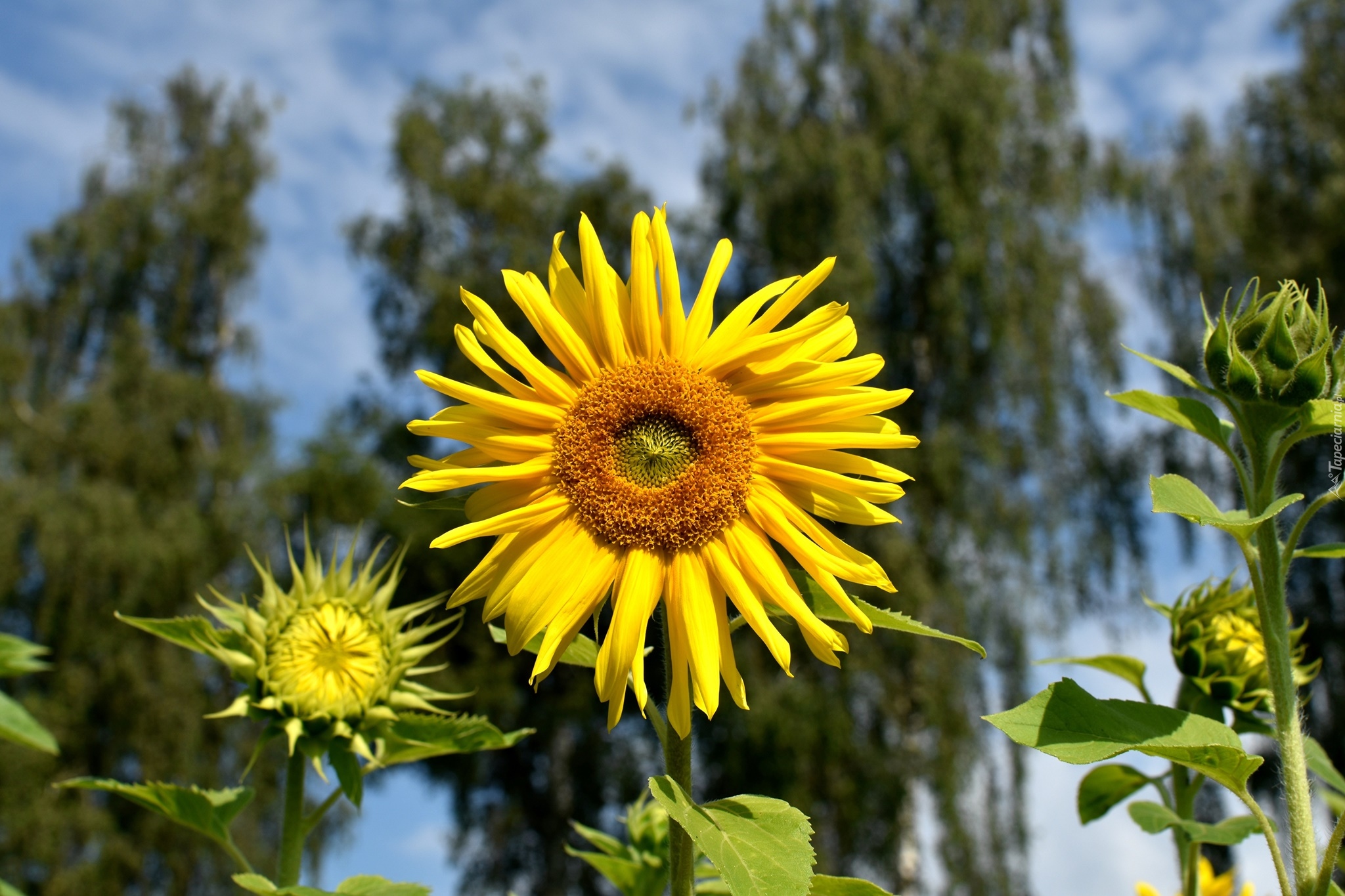 Edytor tapety: Rozwinięty słonecznik z pąkami