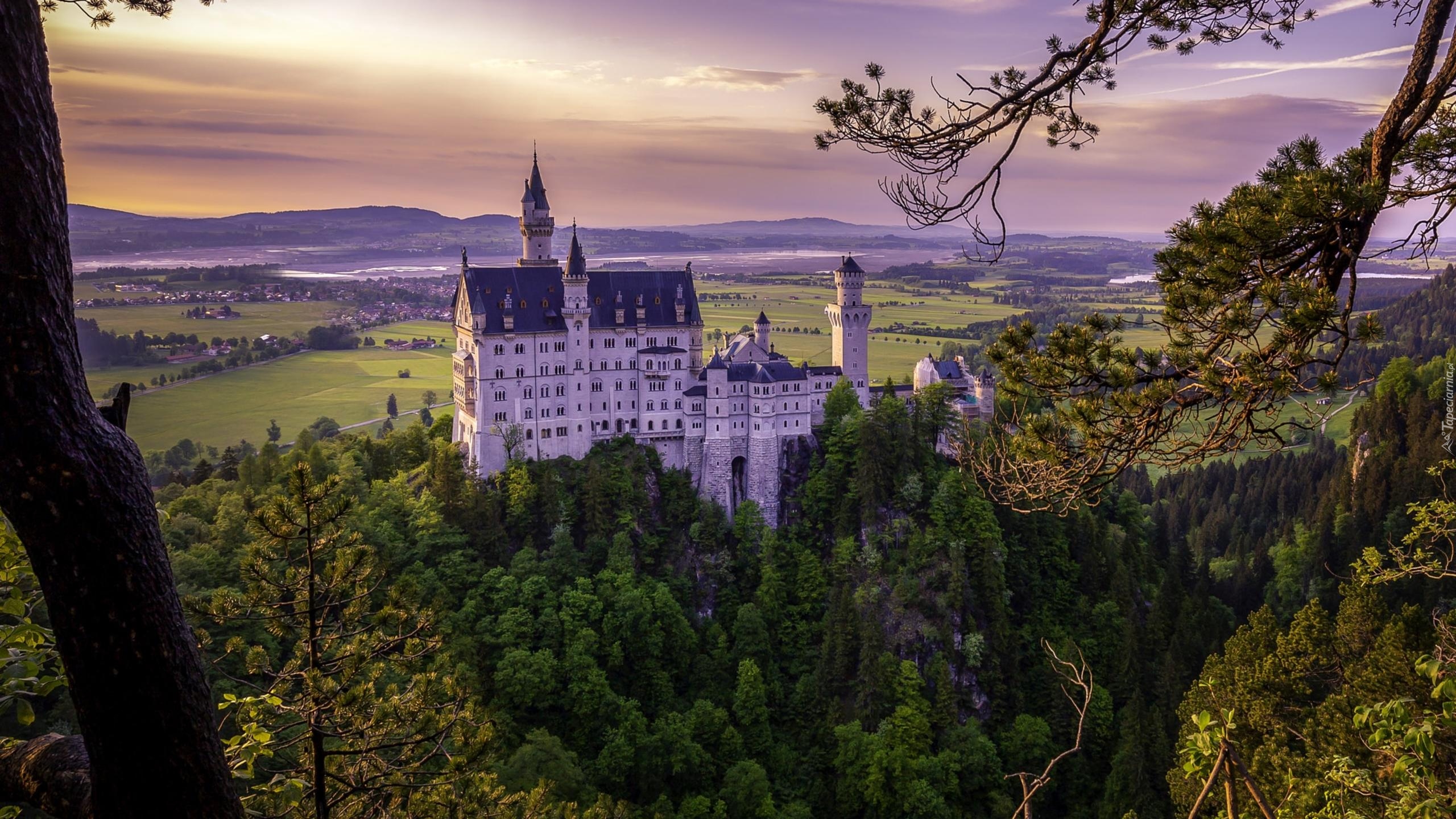Edytor tapety: Widok na malowniczy zamek Neuschwanstein w Bawarii