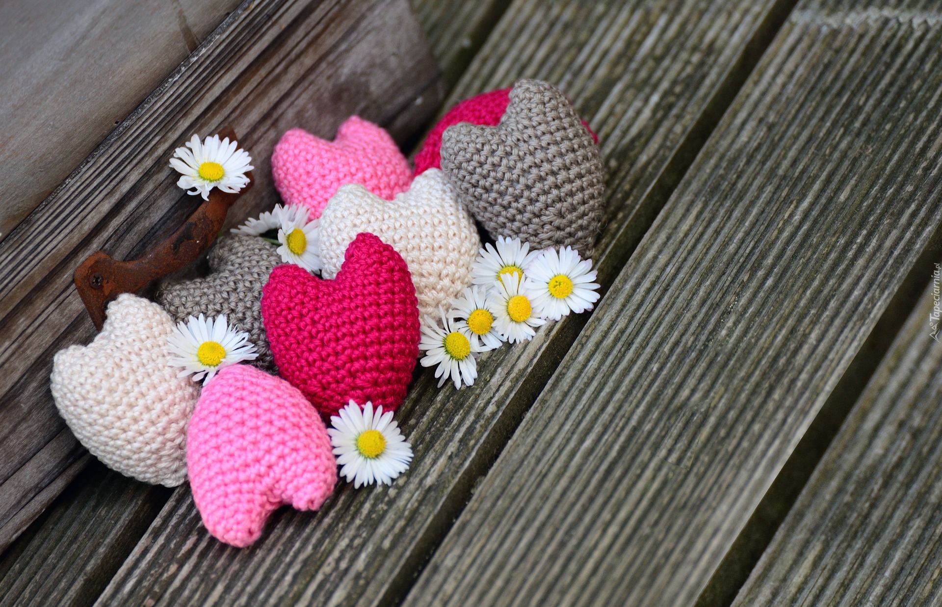 Edytor tapety: Wełniane serduszka i stokrotki