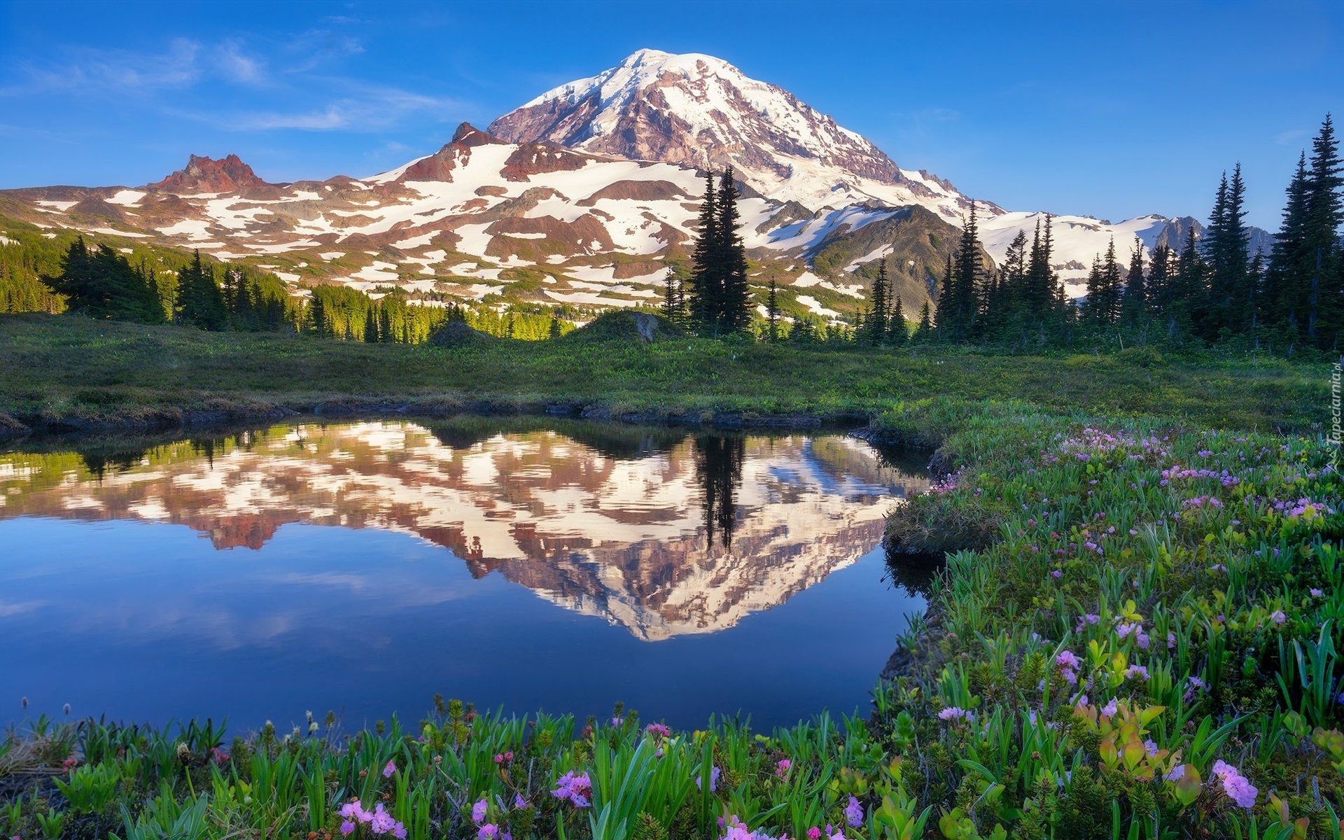 Edytor tapety: Ośnieżony stratowulkan Mount Rainier