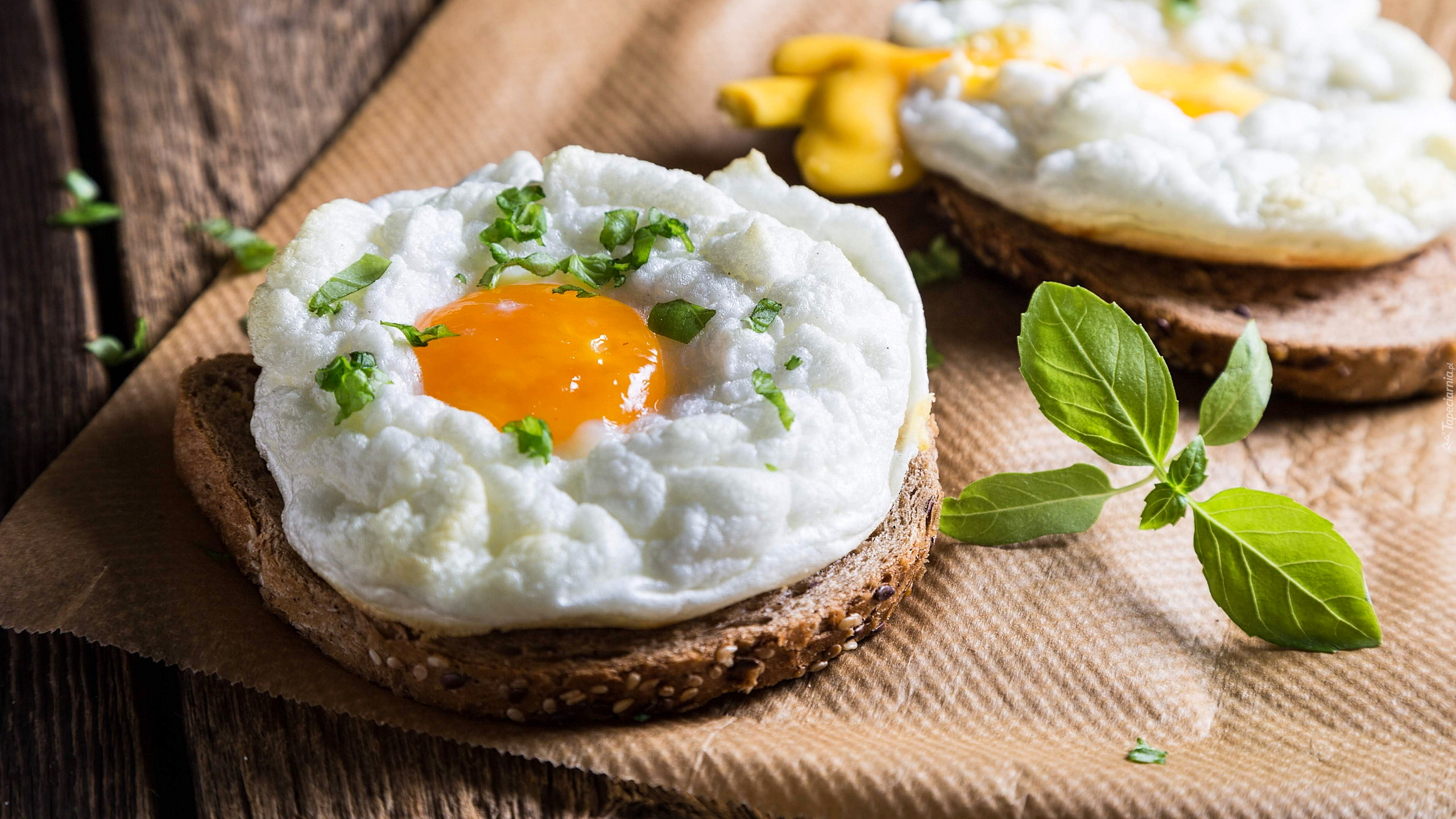 Edytor tapety: Jajka sadzone na kromkach chleba