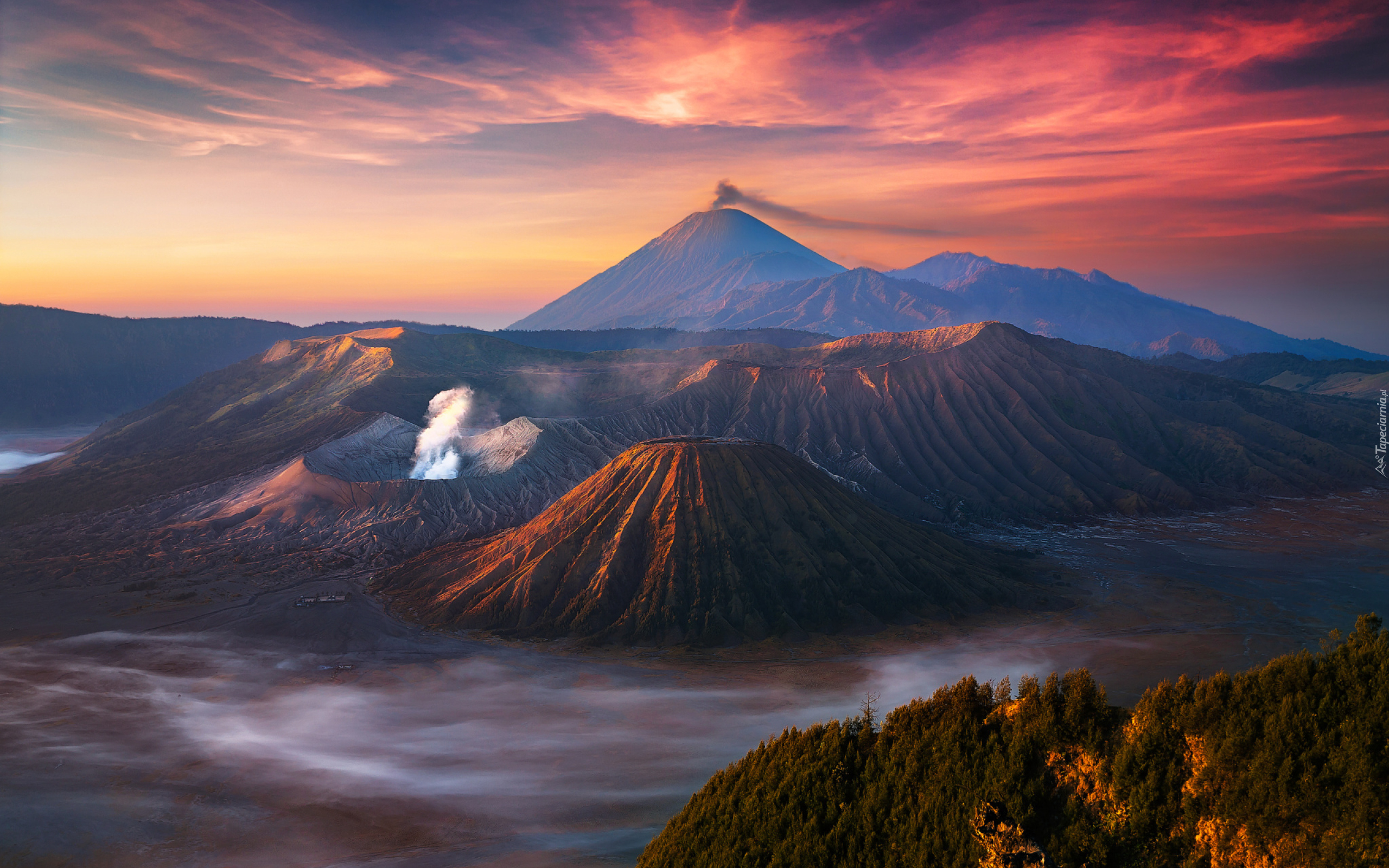 Edytor tapety: Czynny wulkan Mount Bromo na wyspie Jawa