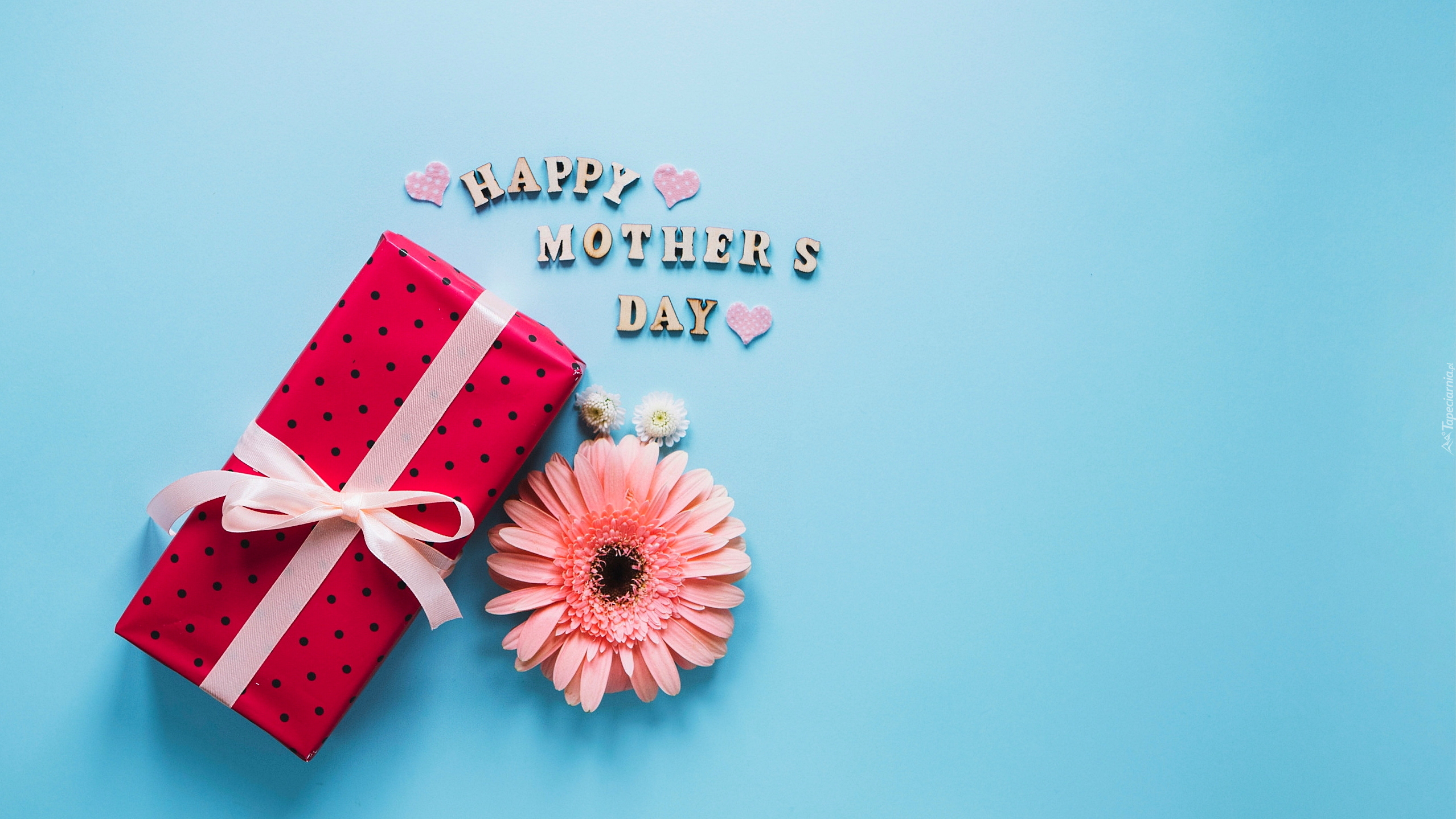 Edytor tapety: Gerbera i prezent dla mamy